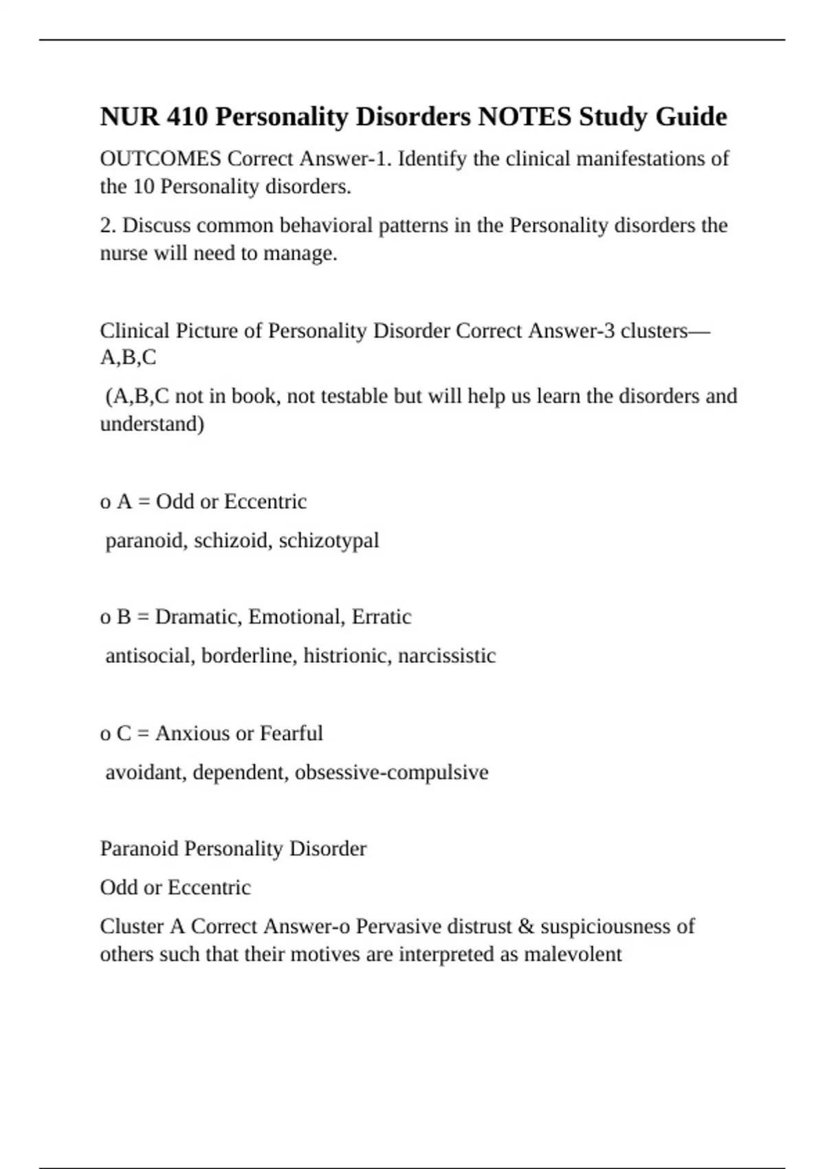 Clinical Picture of Personality Disorder Correct Answer-3 clusters—