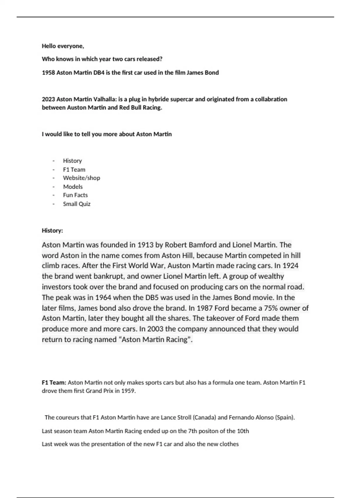I would like to tell you more about Aston Martin