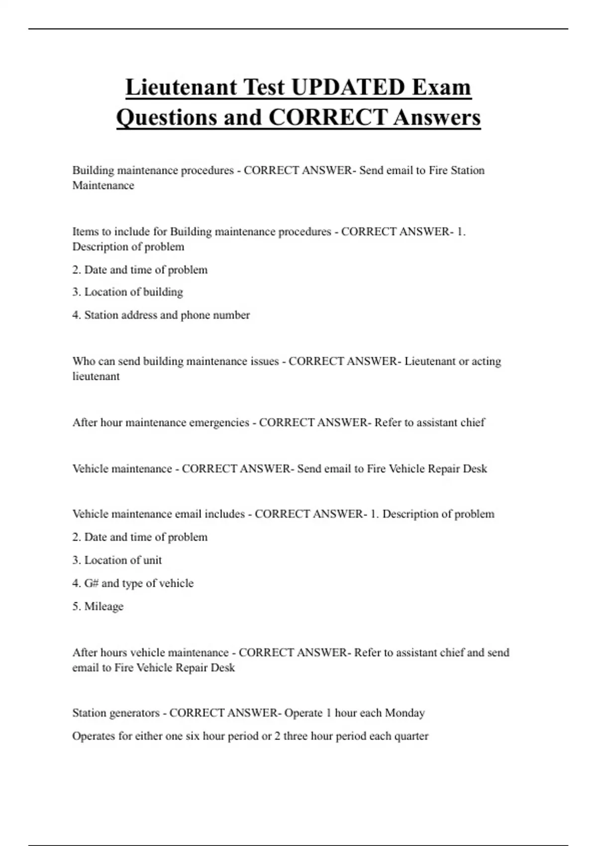 ,Problems with station generators - CORRECT ANSWER- Notify assistant chief