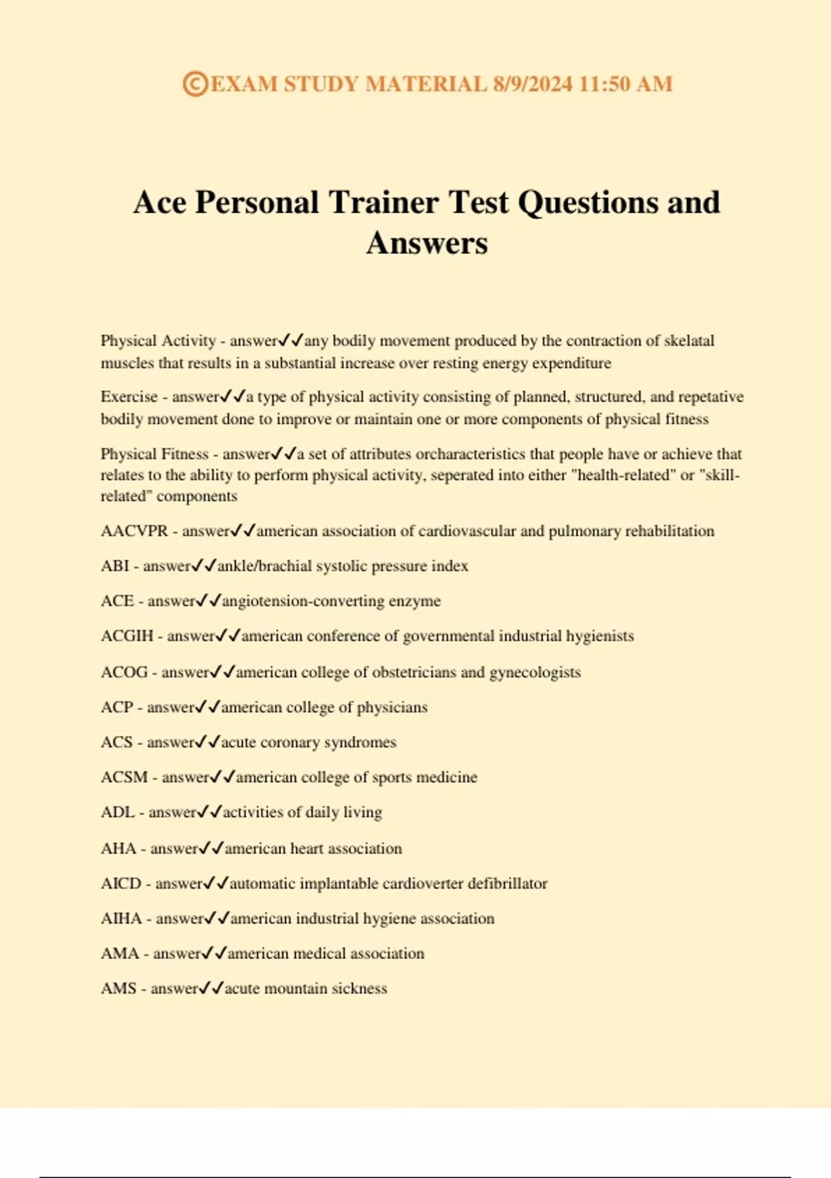 CES - answer✔✔ACSM certified clinical exercise specialist