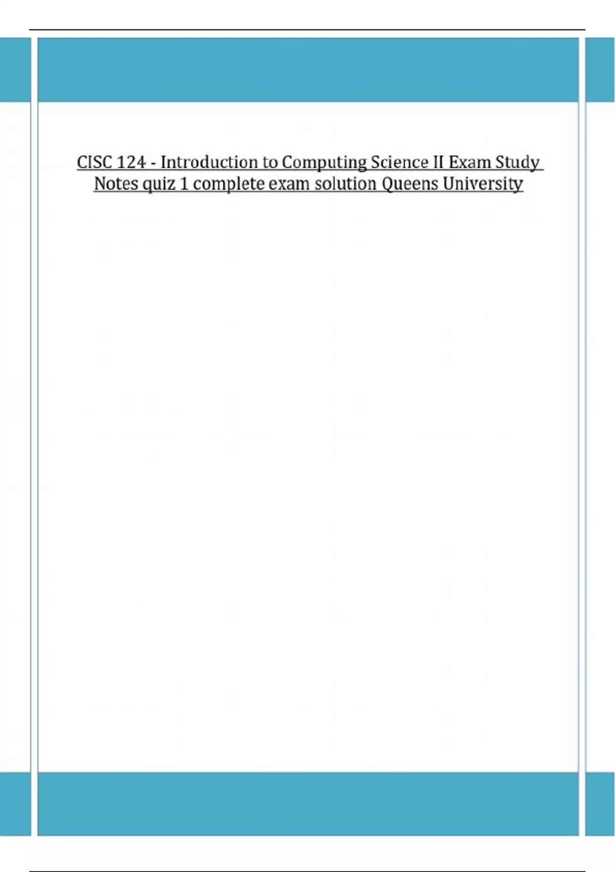 CISC 124 - Introduction to Computing Science II Exam Study Notes quiz 1 complete exam solution Queens University