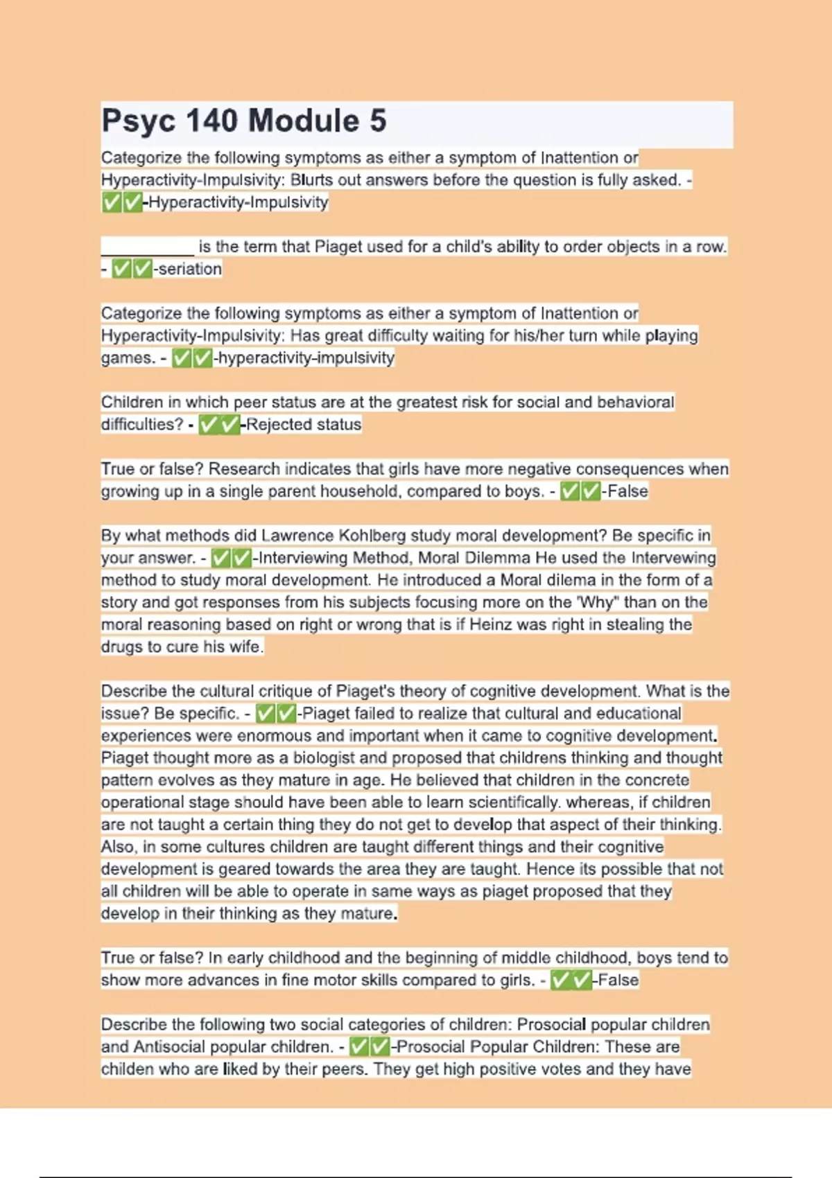 Exam of 3 pages for the course PSYC 140 at PSYC 140 (Psyc 140 Module 5.)