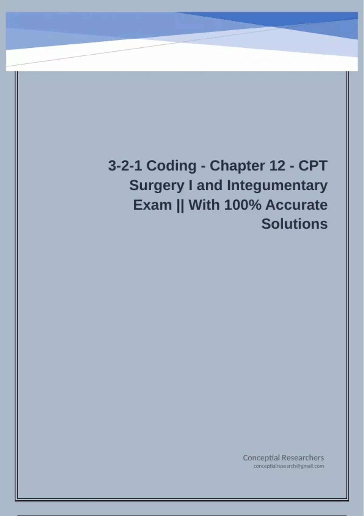 3-2-1 Coding - Chapter 12 - CPT Surgery I and Integumentary Exam || With 100% Accurate Solutions