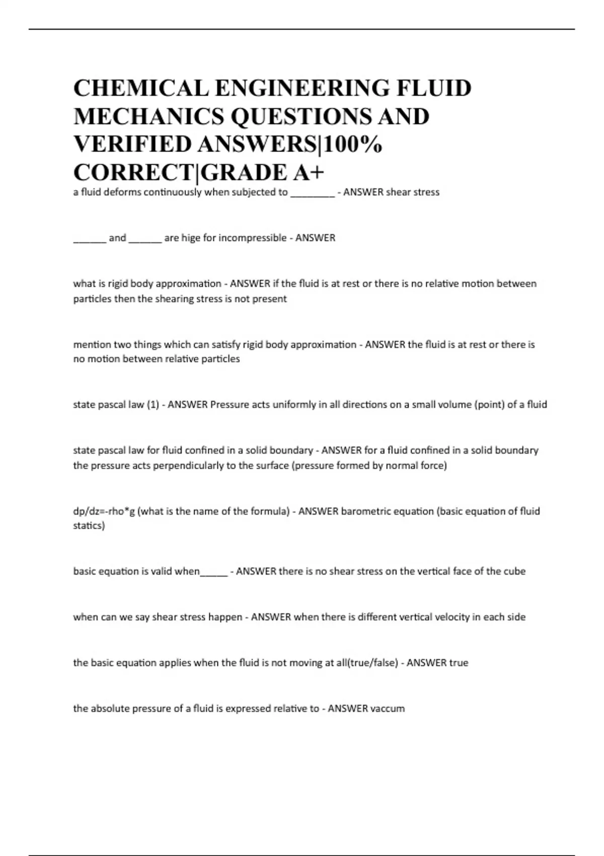 a fluid deforms continuously when subjected to ________ - ANSWER shear stress