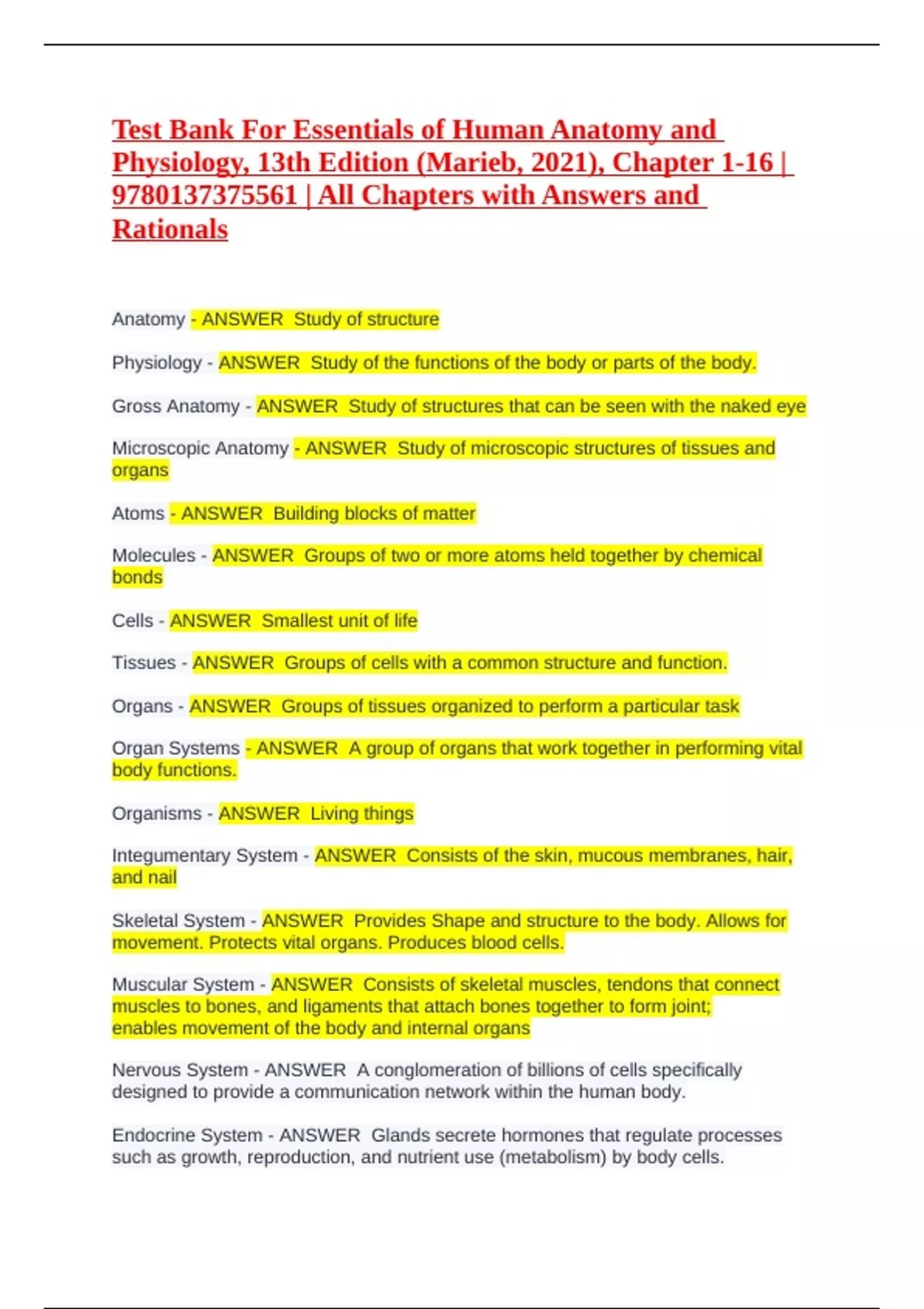 Physiology, 13th Edition (Marieb, 2021), Chapter 1-16 |