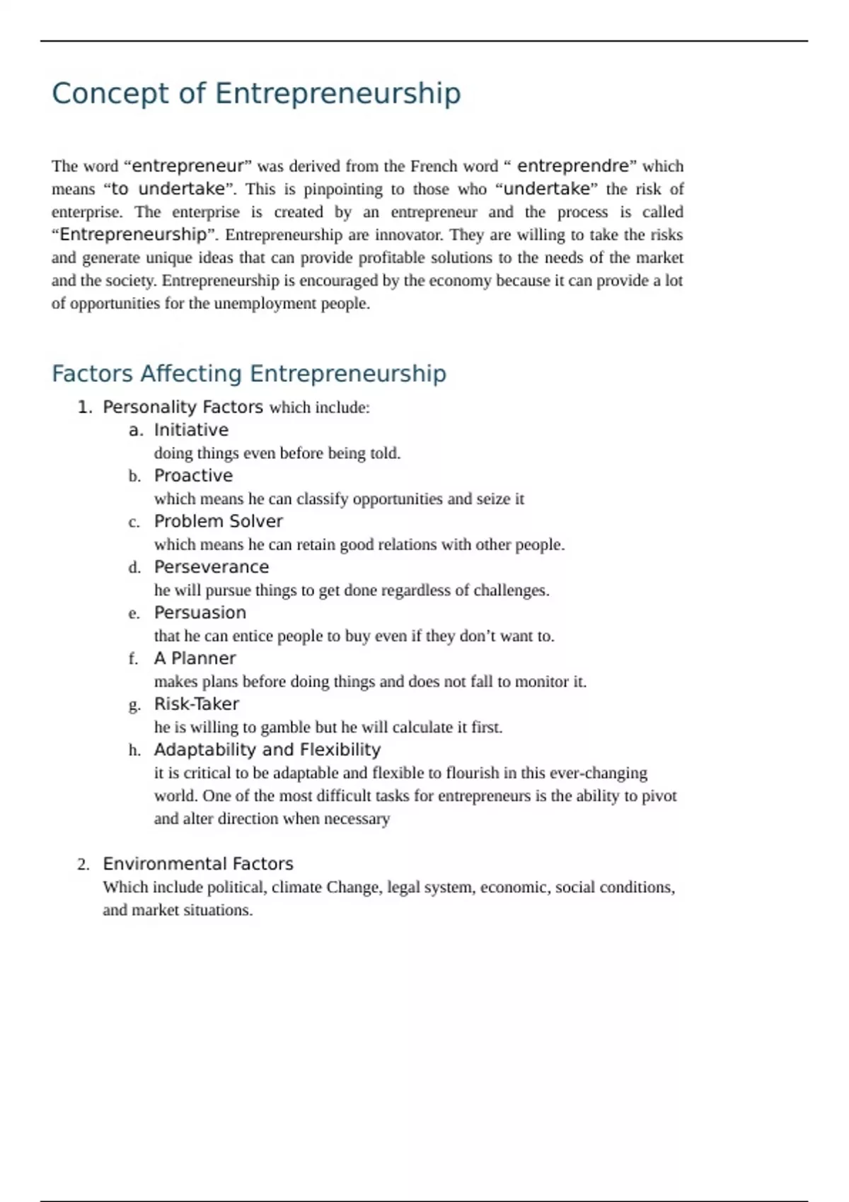 Factors Affecting Entrepreneurship