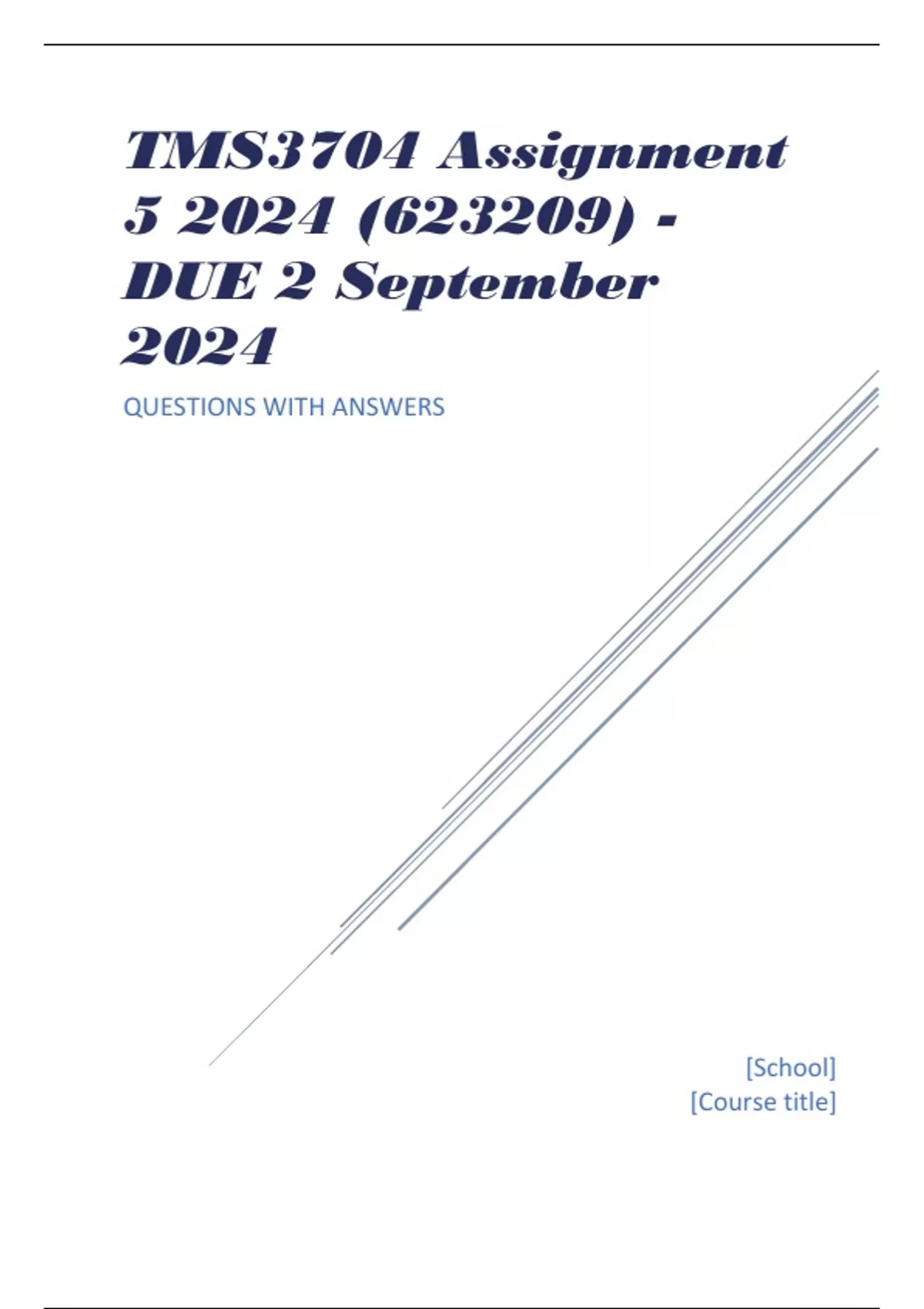 TMS3704 Assignment 5 2024 (623209) - DUE 2 September 2024 COMPLETE ANSWERS