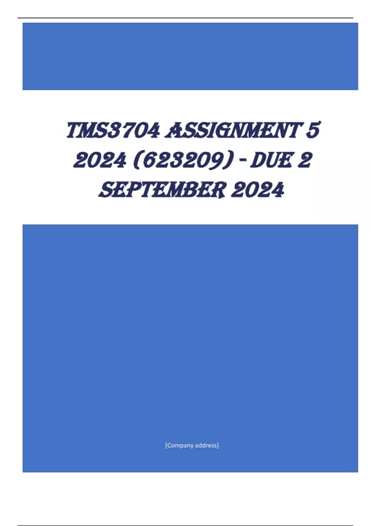 QUESTIONS WITH ANSWERS TMS3704 Assignment 5 2024 (623209) - DUE 2 September 2024