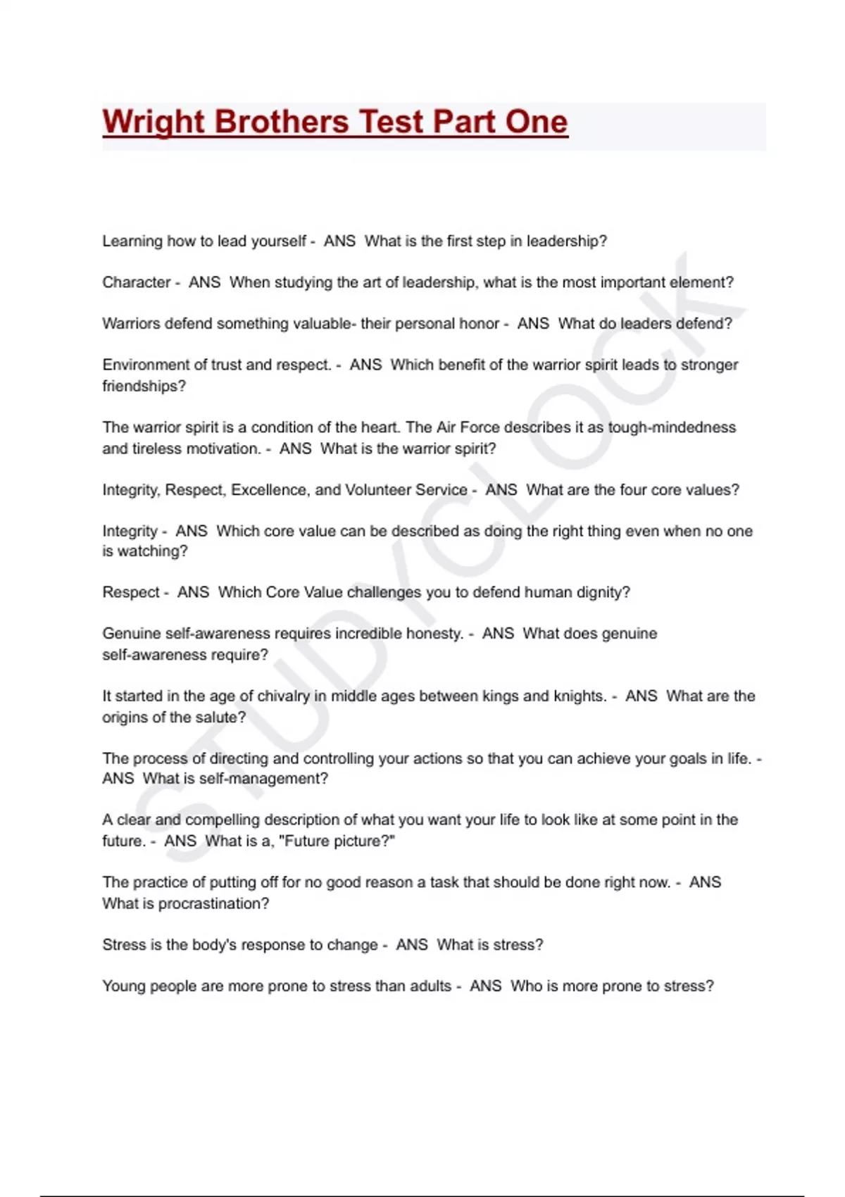 Character - ANS When studying the art of leadership, what is the most important element?