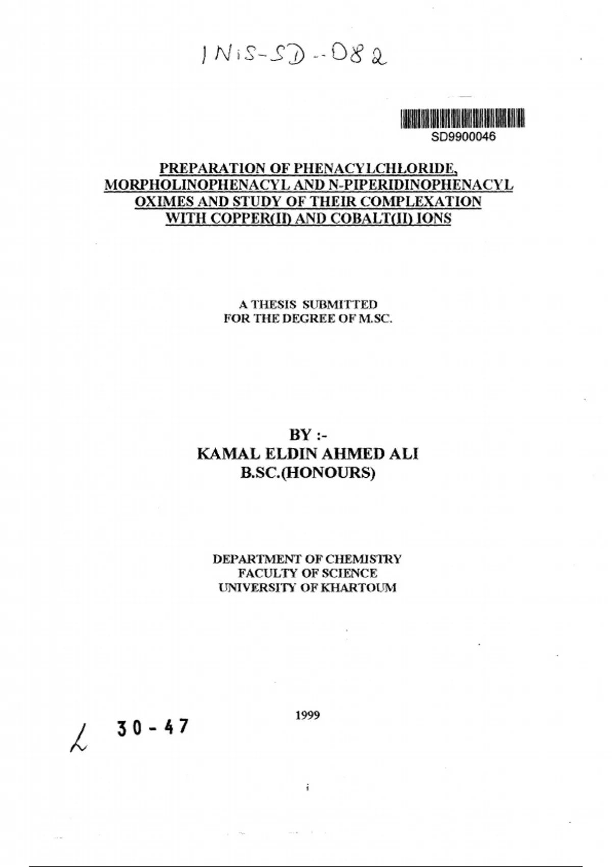 2.12.4 Physicochemical analysis of phenacyl oxime complexes 79