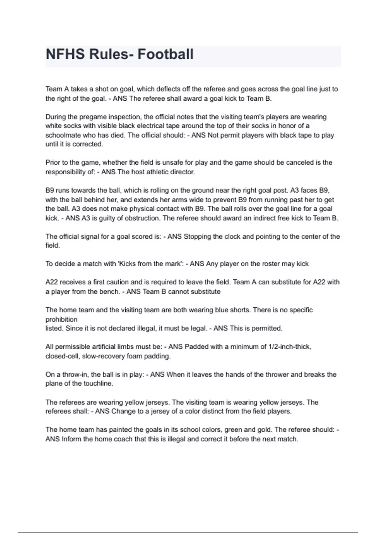 that the visiting team is wearing a yellow jersey. The referee shall: - ANS Instruct the visiting