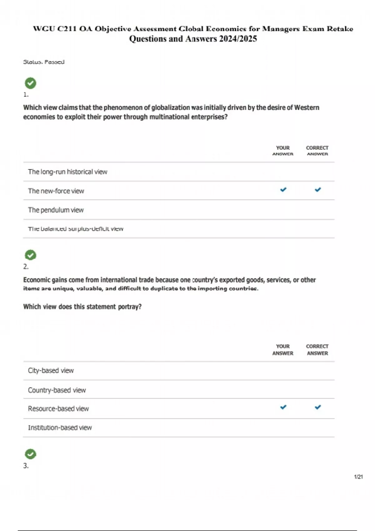 WGU C211 OA Objective Assessment Global Economics for Managers Exam Retake Questions and Answers 2024/2025
