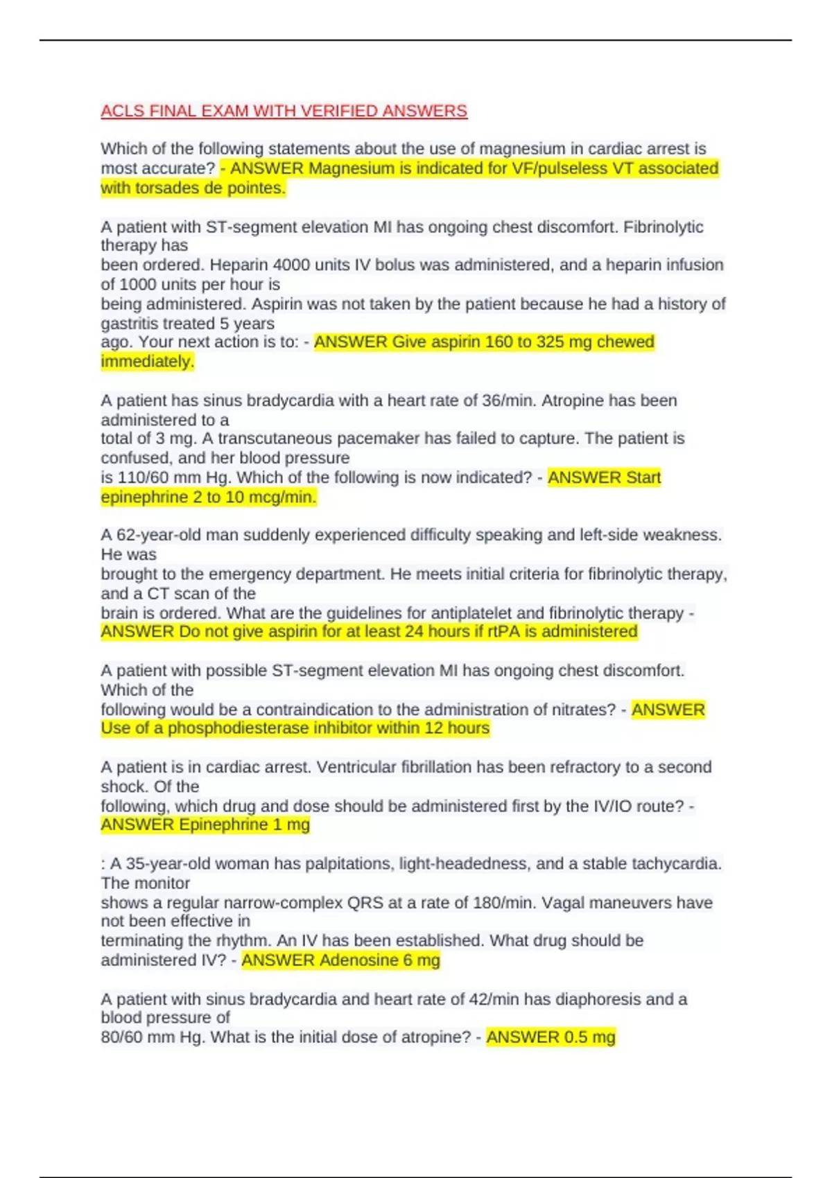 ACLS FINAL EXAM WITH VERIFIED ANSWERS