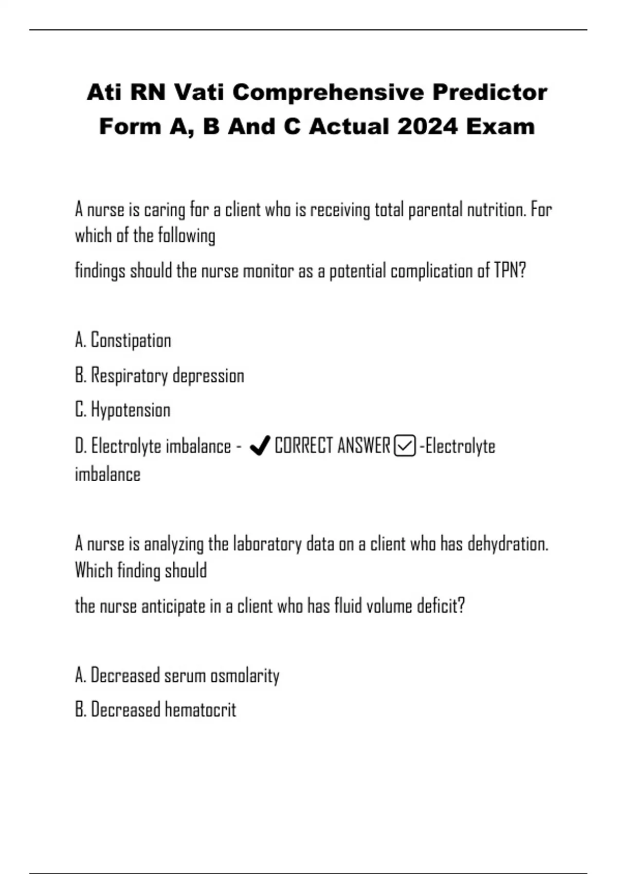 D. Electrolyte imbalance - ✔️CORRECT ANSWER✅-Electrolyte