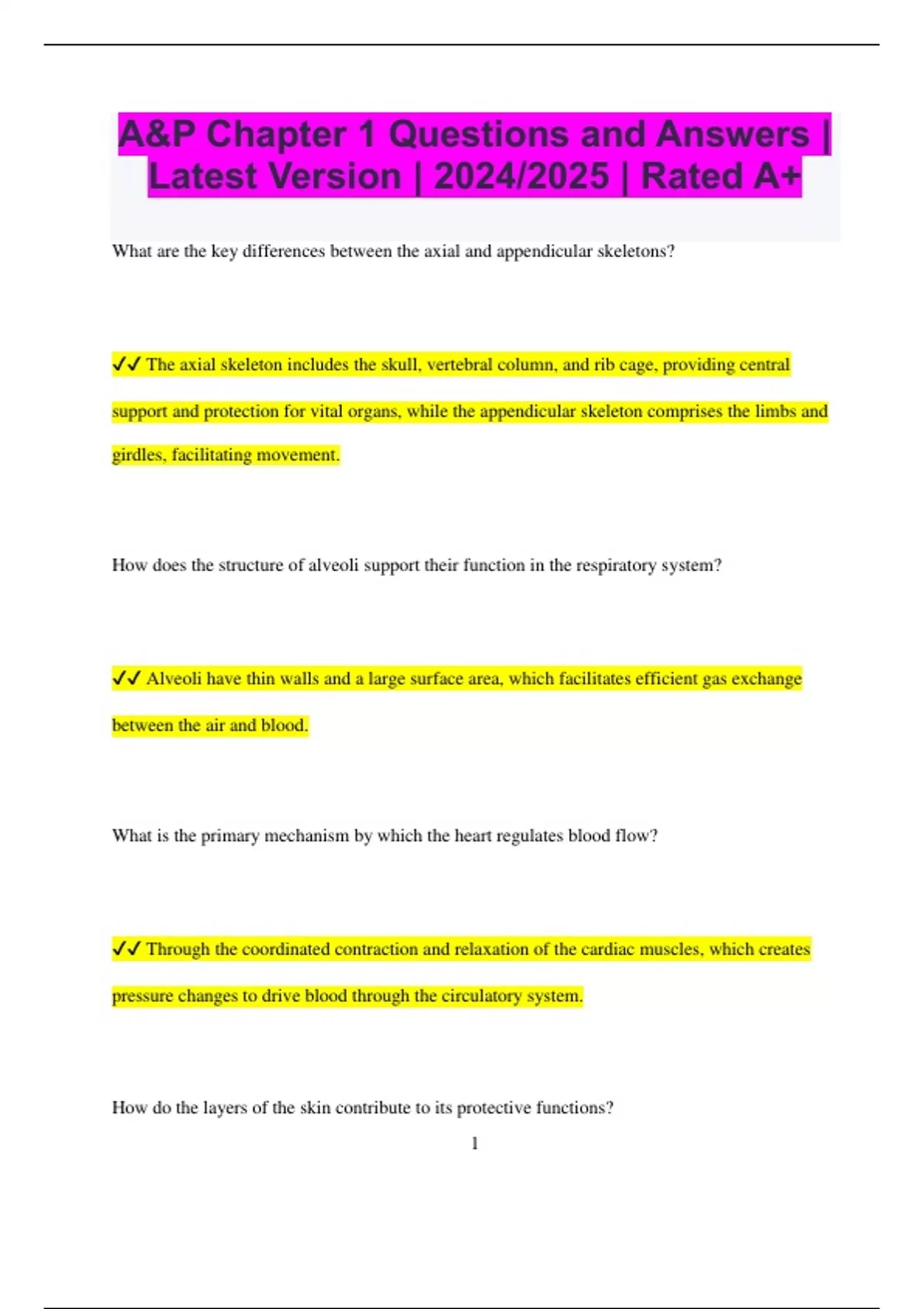 A&P Chapter 1 Questions and Answers | Latest Version | 2024/2025 | Rated A+