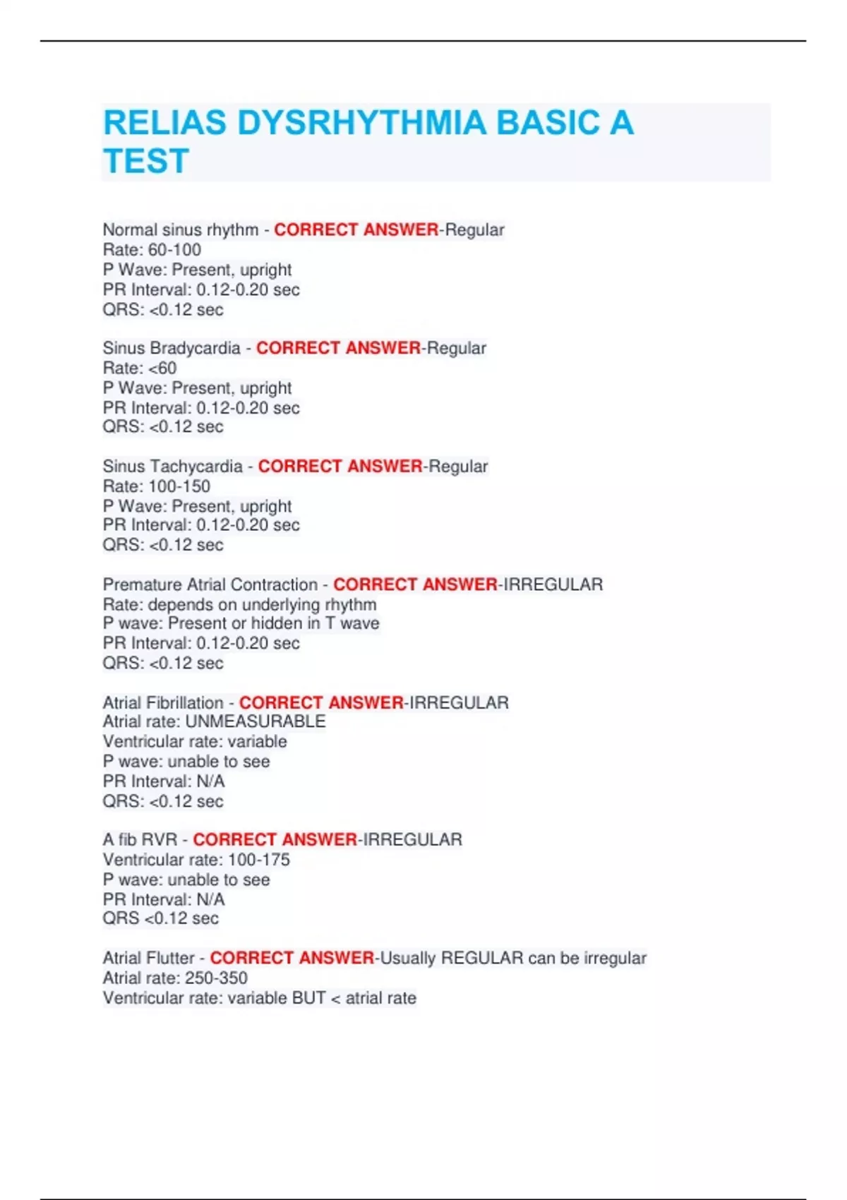 Exam (elaborations) RELIAS DYSRHYTHMIA BASIC