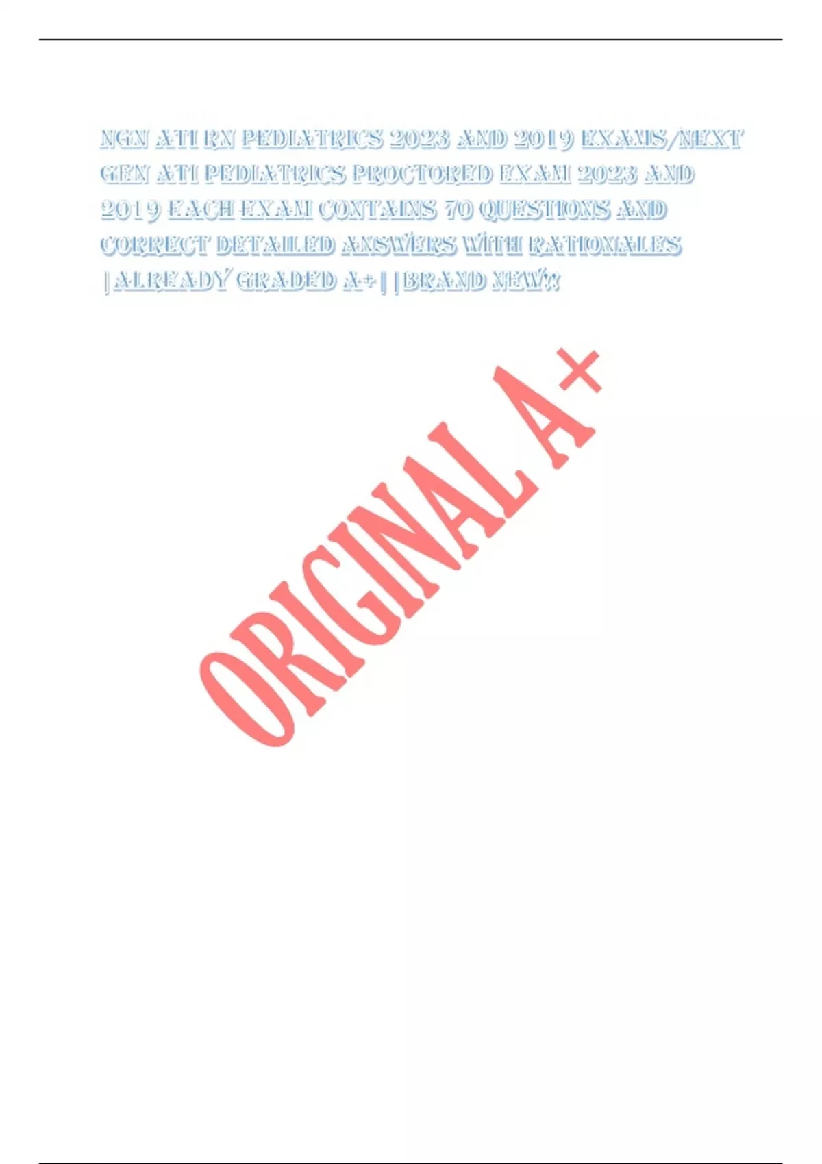 NGN ATI RN PEDIATRICS 2023 AND 2019 EXAMS/NEXT
