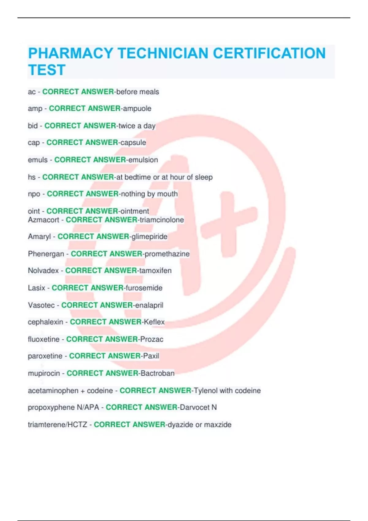 PHARMACY TECHNICIAN CERTIFICATION TEST (CORRECT)!!!