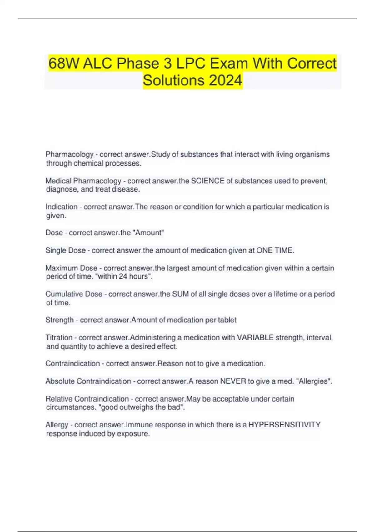 68W ALC Phase 3 LPC Exam With Correct