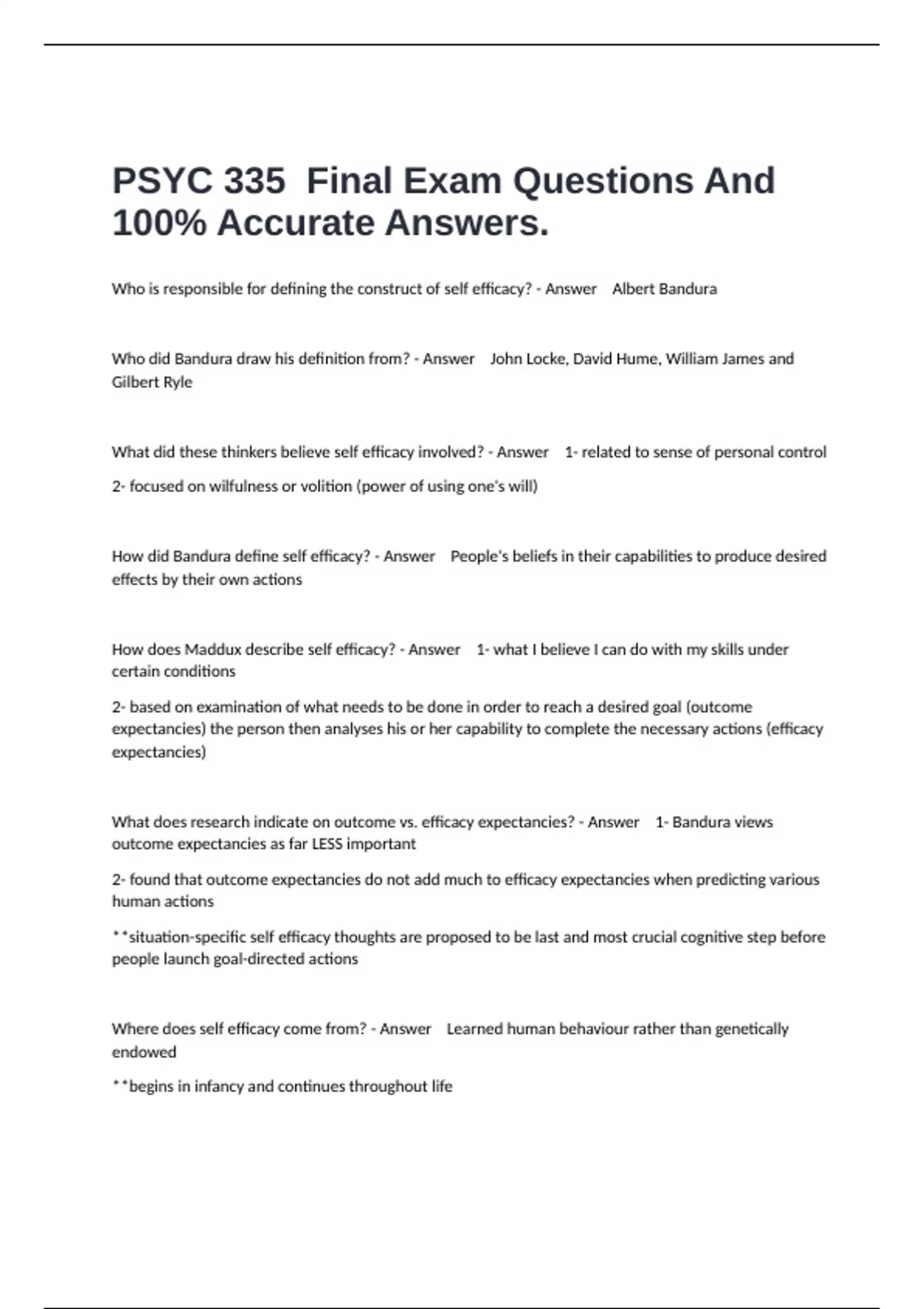 How did Bandura define self efficacy? - Answer People's beliefs in their capabilities to produce desired