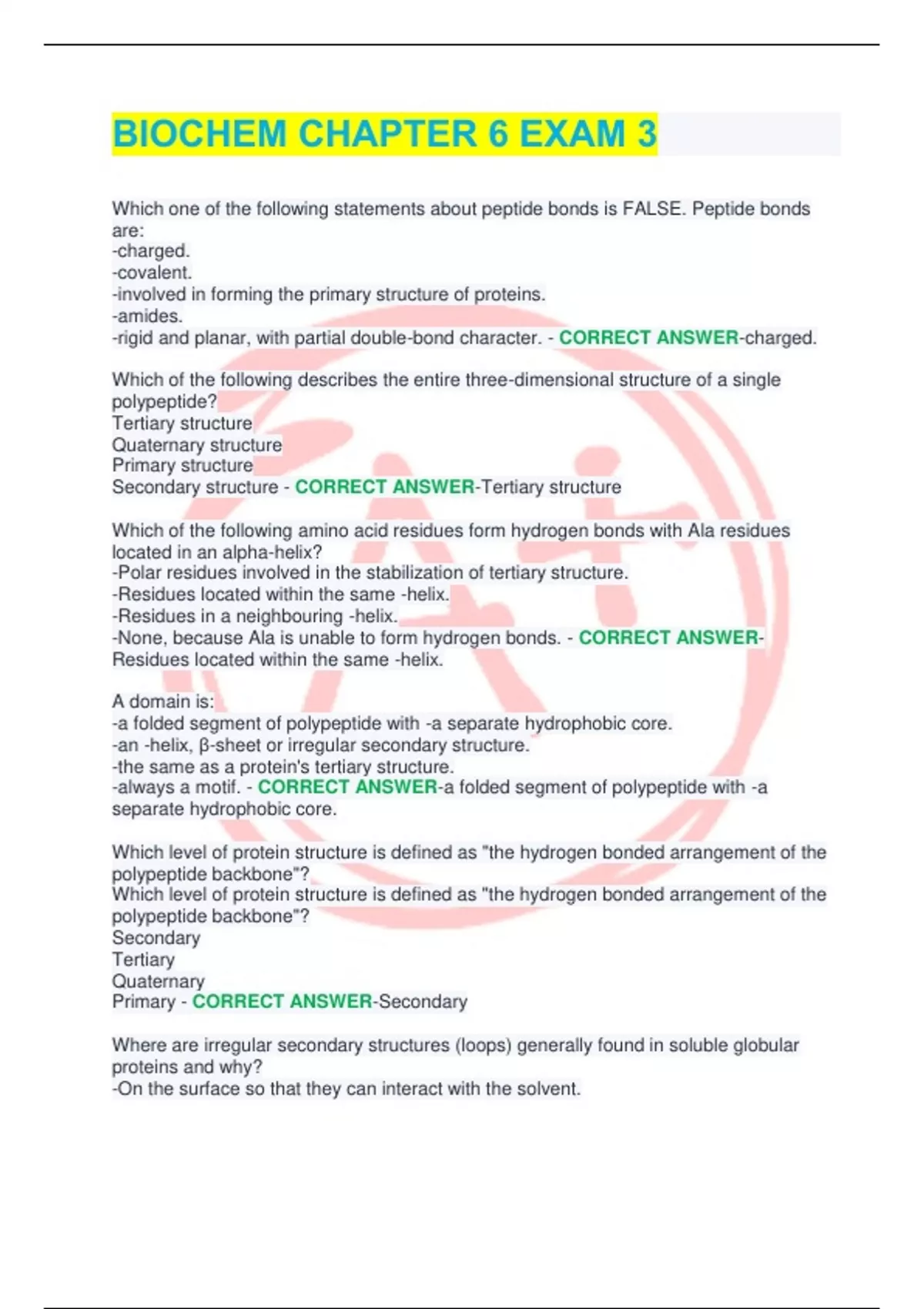 Secondary structure - CORRECT ANSWER-Tertiary structure