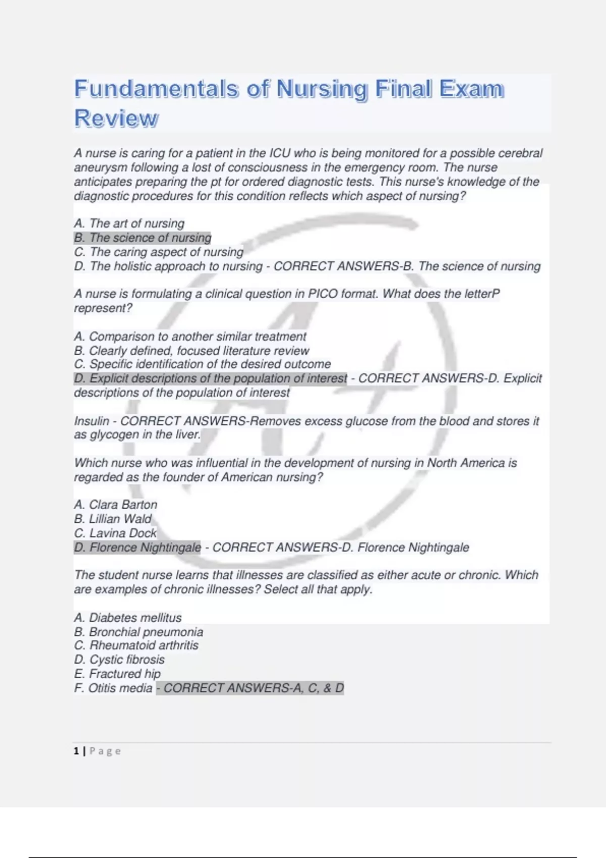 D. Florence Nightingale - CORRECT ANSWERS-D. Florence Nightingale