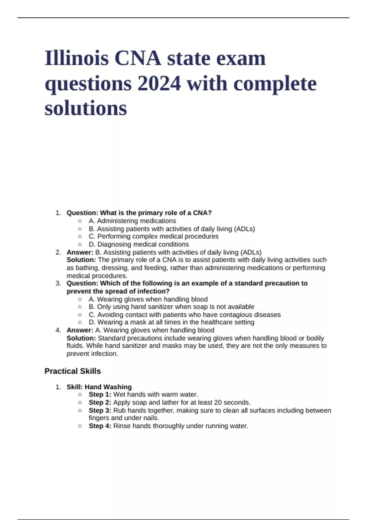 1. Question: What is the primary role of a CNA?