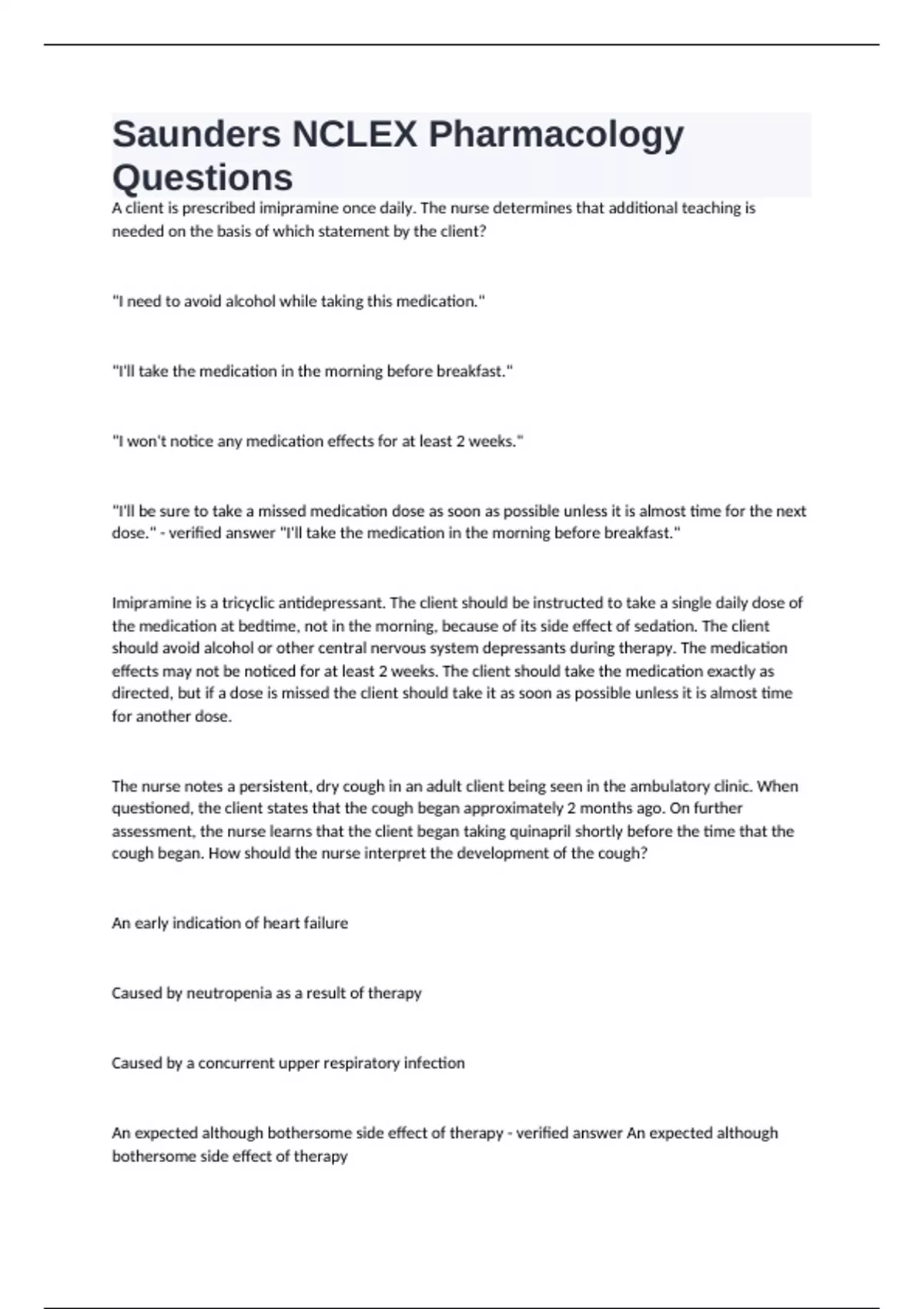 Saunders NCLEX Pharmacology Questions 2024/2025
