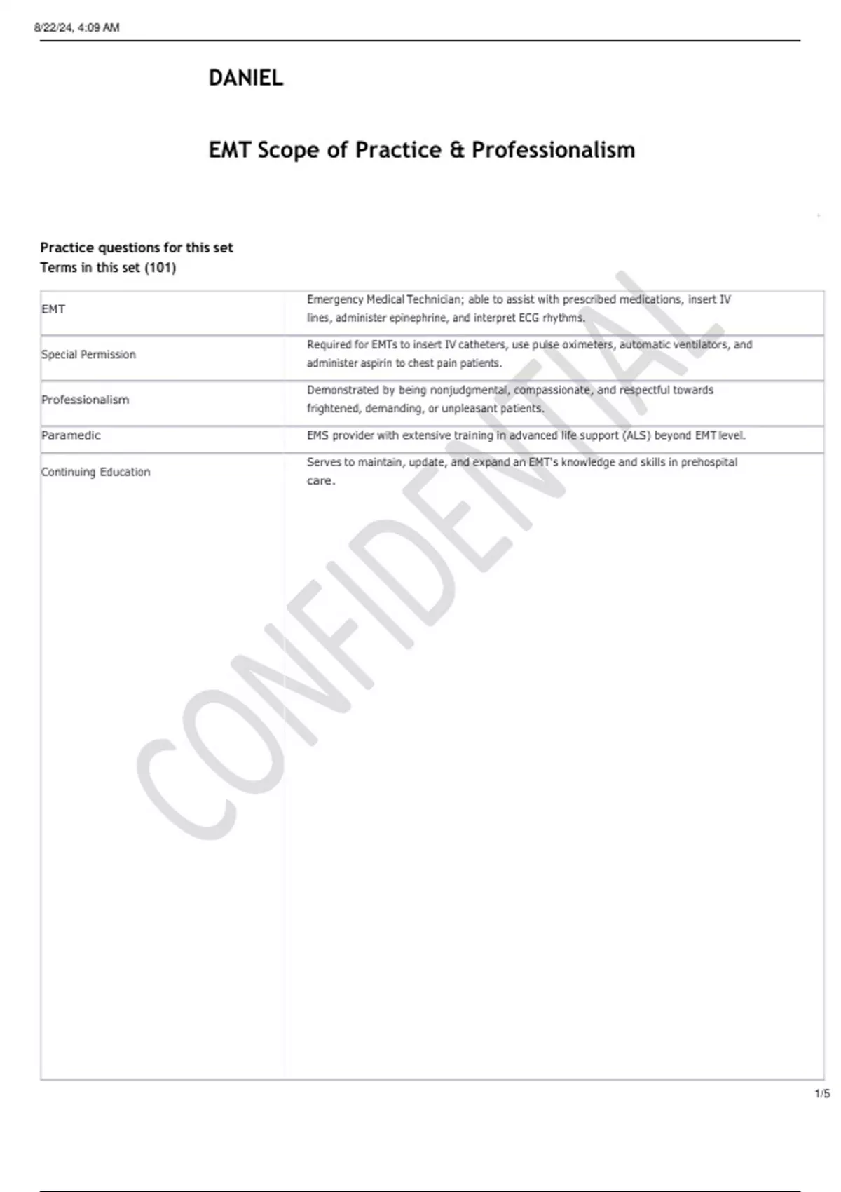 Emergency Medical Technician; able to assist with prescribed medications, insert IV