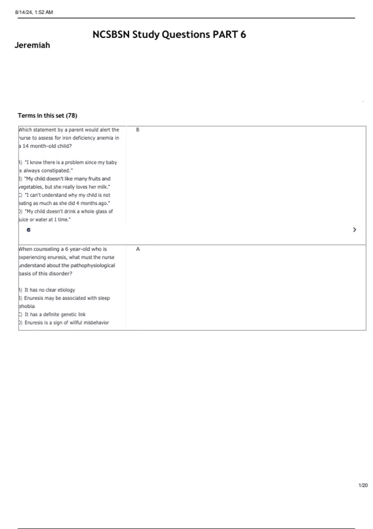 NCSBSN Study Questions PART 6