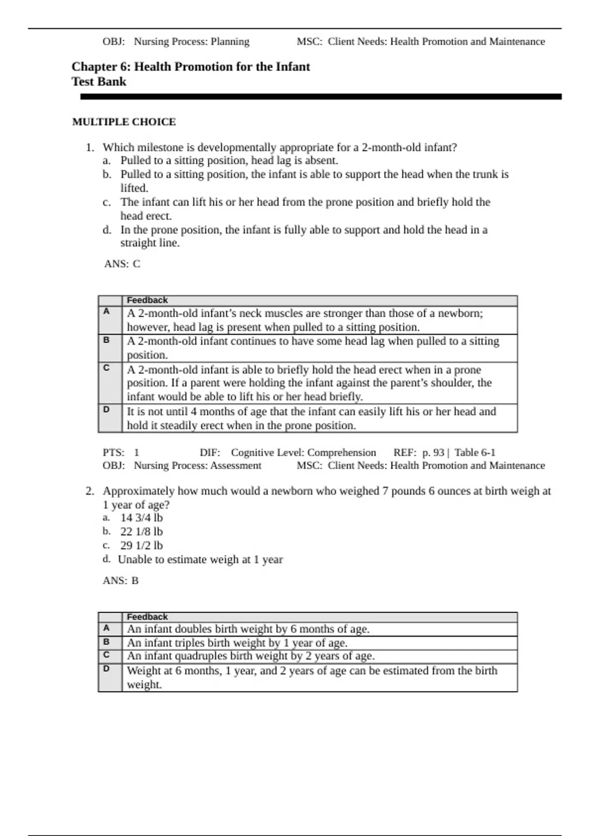 OBJ: Nursing Process: Planning MSC: Client Needs: Health Promotion and Maintenance