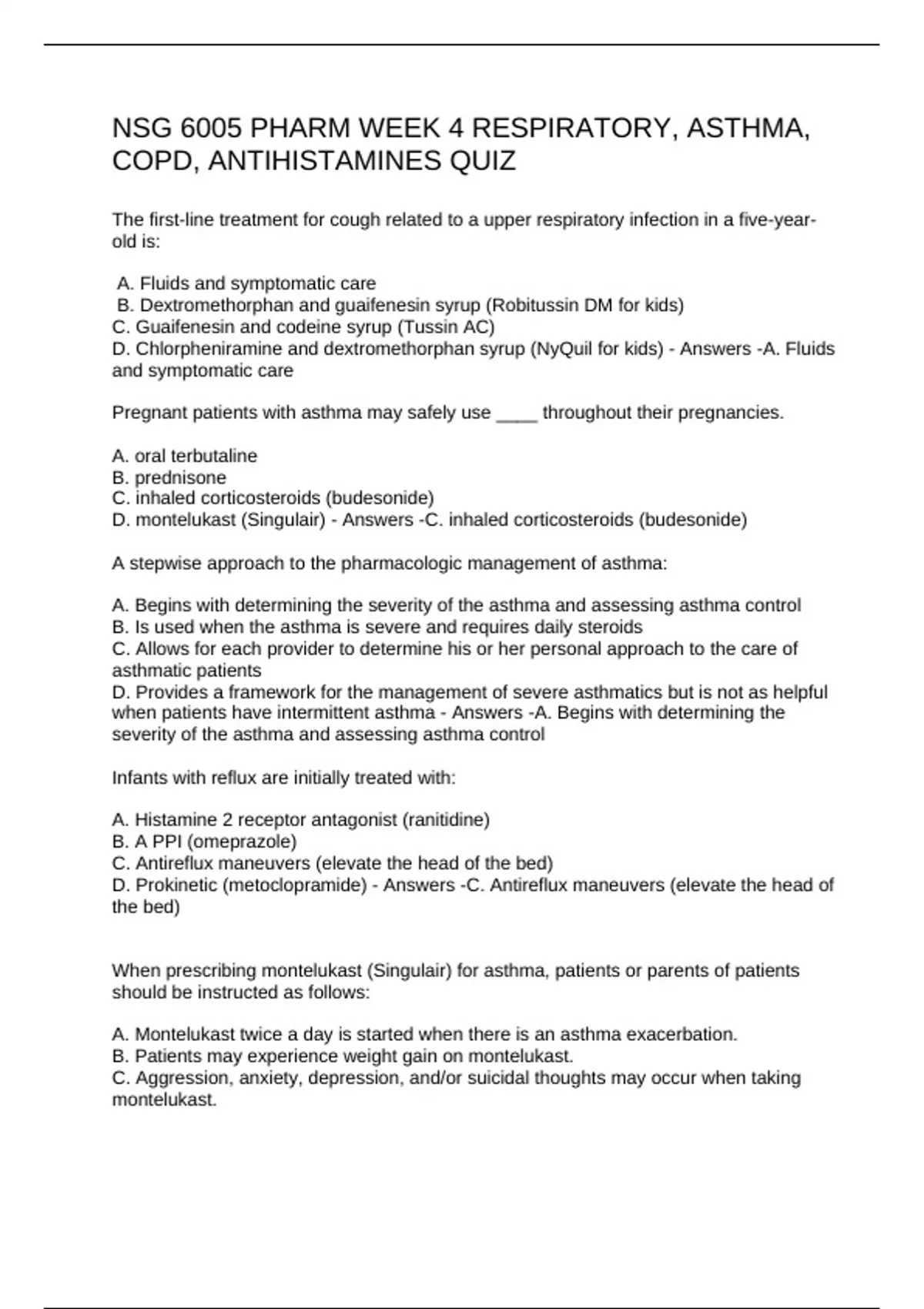 NSG 6005 PHARM WEEK 4 RESPIRATORY, ASTHMA, COPD, ANTIHISTAMINES QUIZ