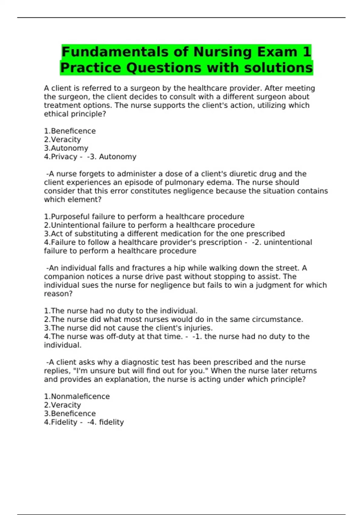 Practice Questions with solutions