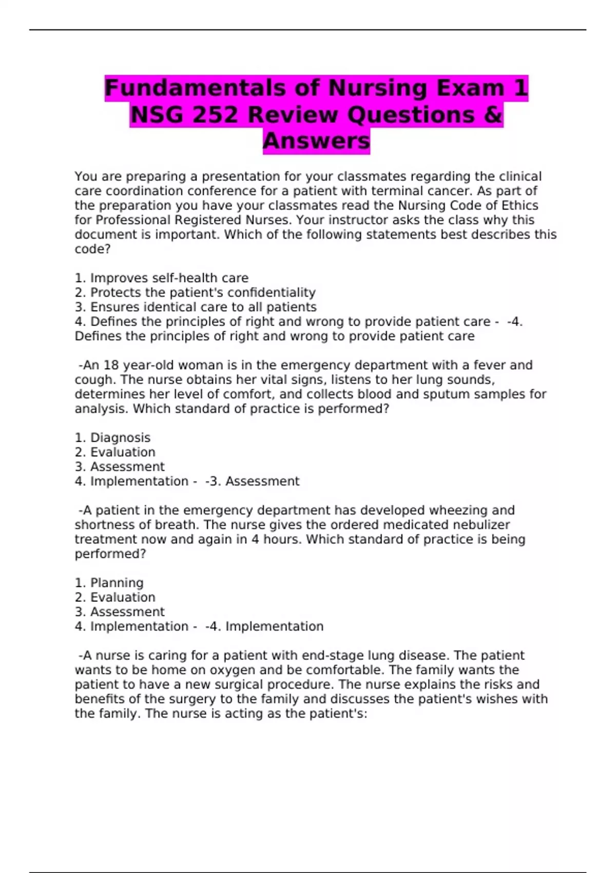 NSG 252 Review Questions &