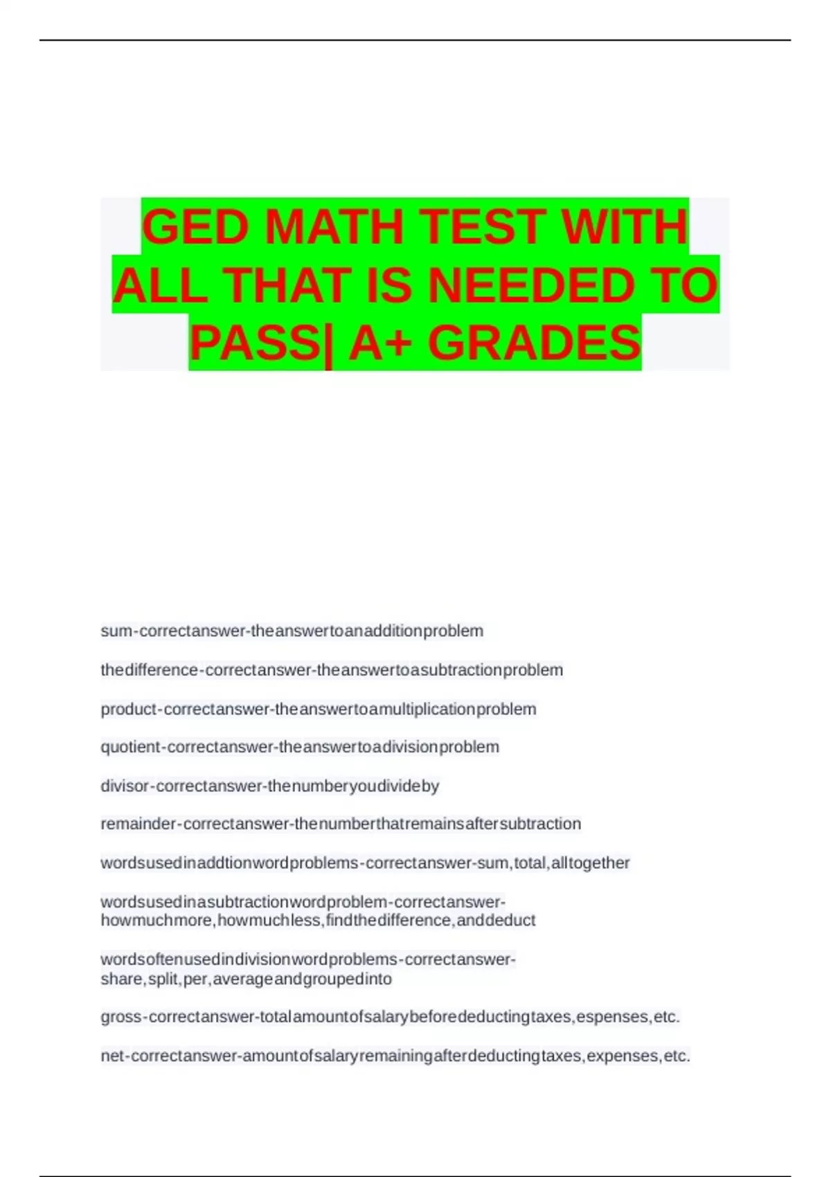 GED MATH TEST WITH ALL THAT IS NEEDED TO PASS| A+ GRADES