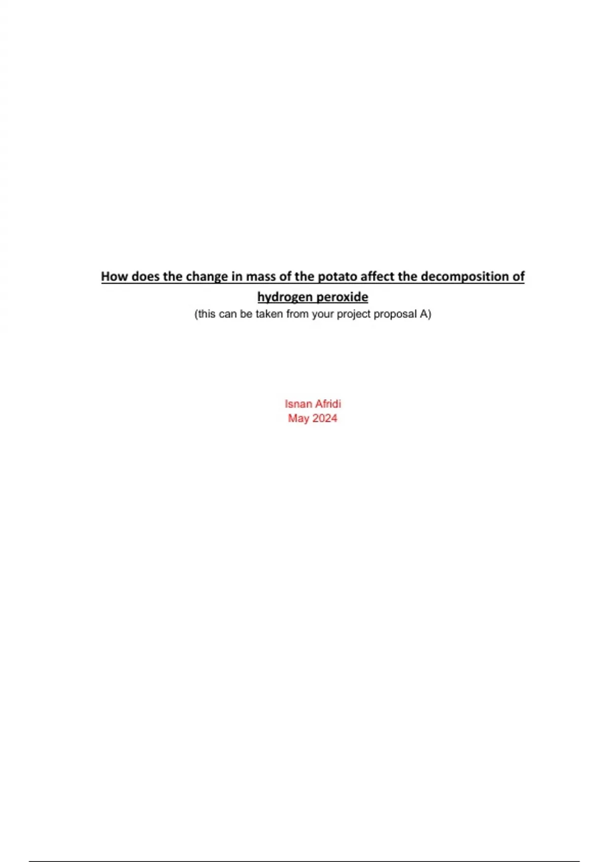 The investigation aims to explore how varying masses of potato affect the rate of hydrogen peroxide