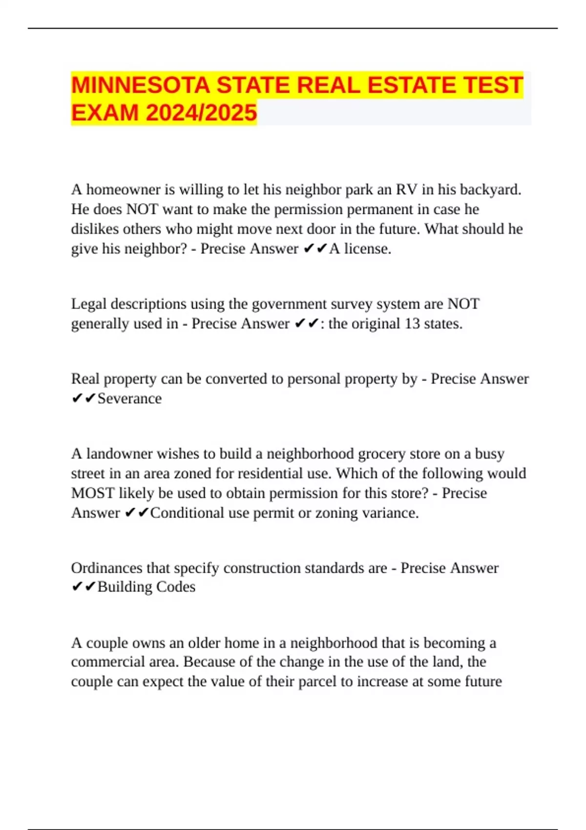 MINNESOTA STATE REAL ESTATE TEST EXAM 2024/2025