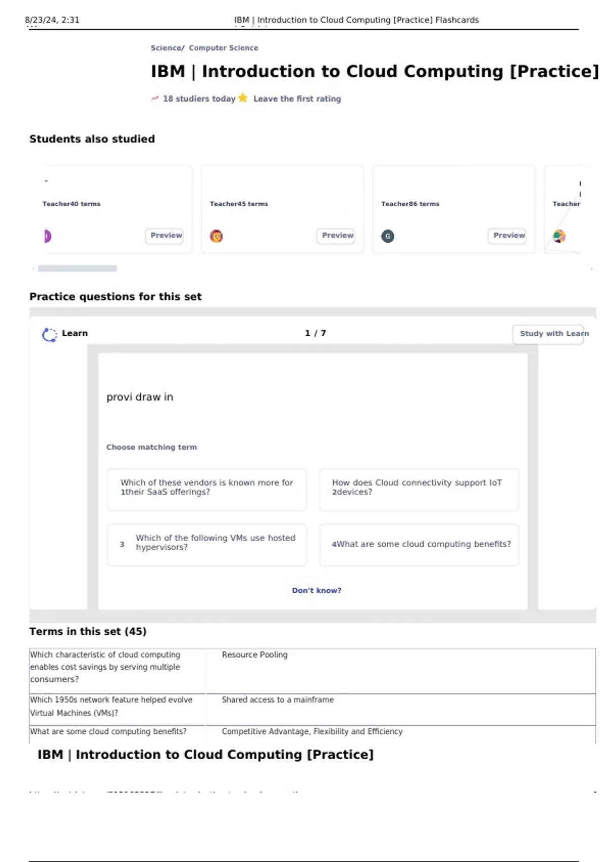 8/23/24, 2:31 IBM | Introduction to Cloud Computing [Practice] Flashcards