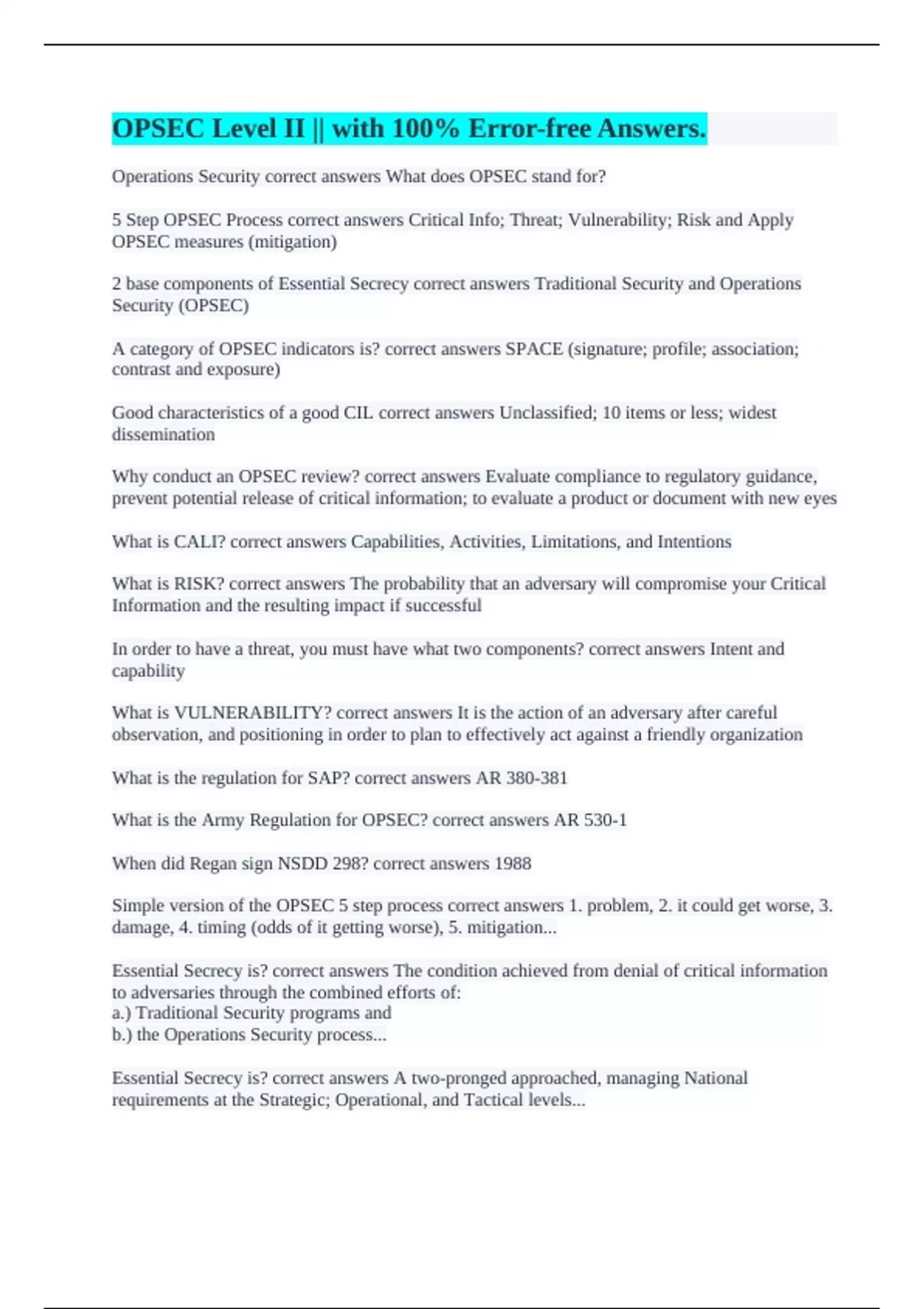 Operations Security correct answers What does OPSEC stand for?