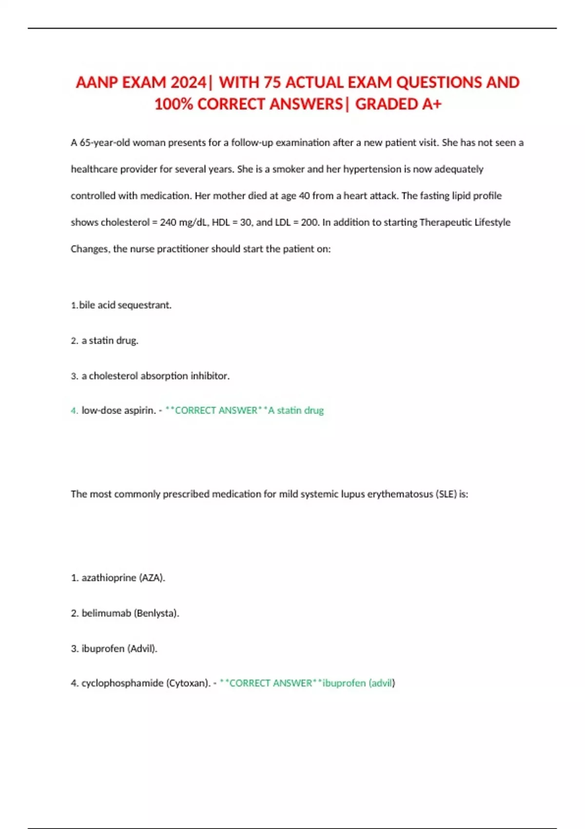 4. low-dose aspirin. - **CORRECT ANSWER**A statin drug