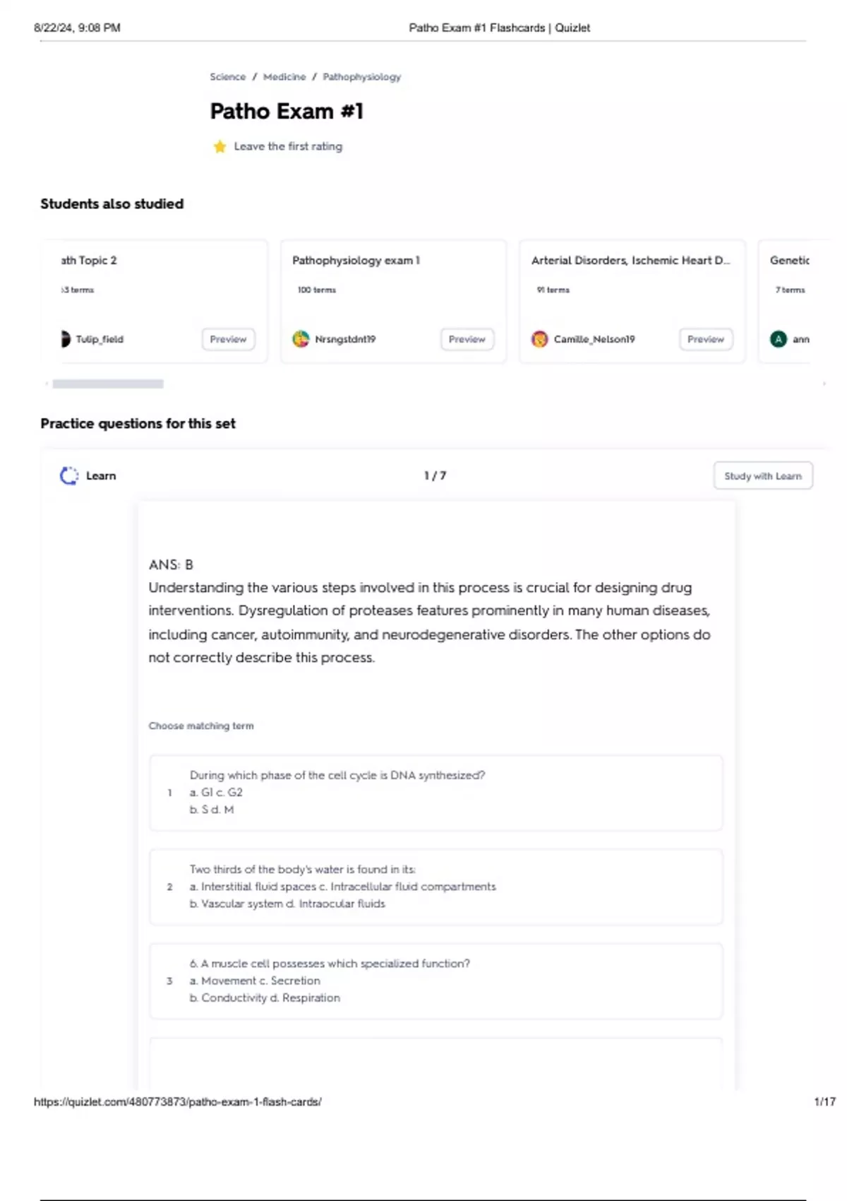, 8/22/24, 9:08 PM Patho Exam #1 Flashcards | Quizlet