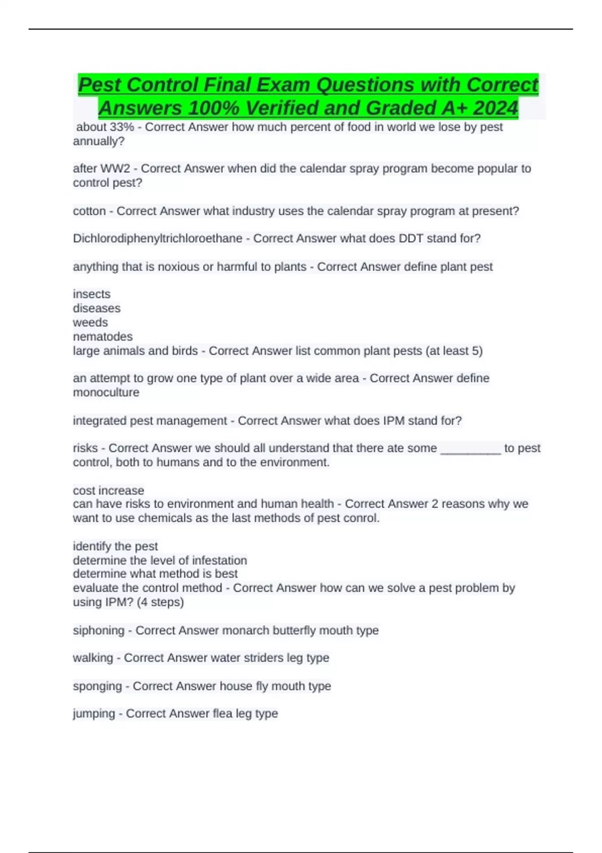 evaluate the control method - Correct Answer how can we solve a pest problem by