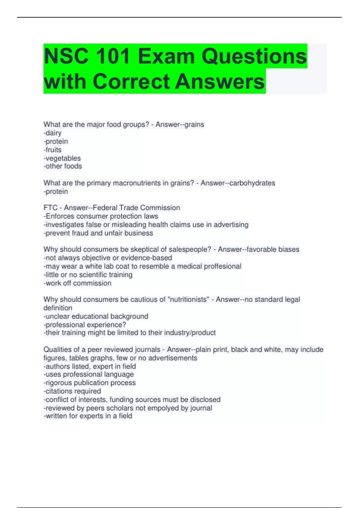 Qualities of a peer reviewed journals - Answer--plain print, black and white, may include