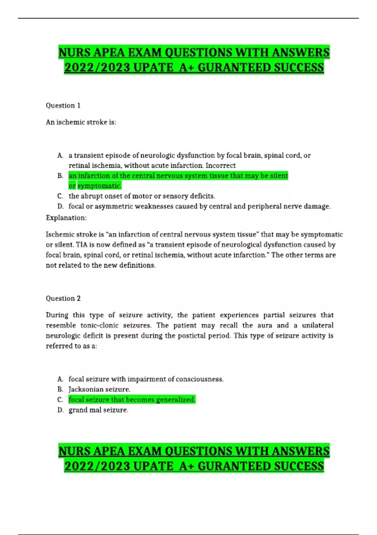 CHAMBERLAIN COLLEGE OF NURSING NR 509 APEA EXAM - RANDOM. QUESTION AND ANSWERS