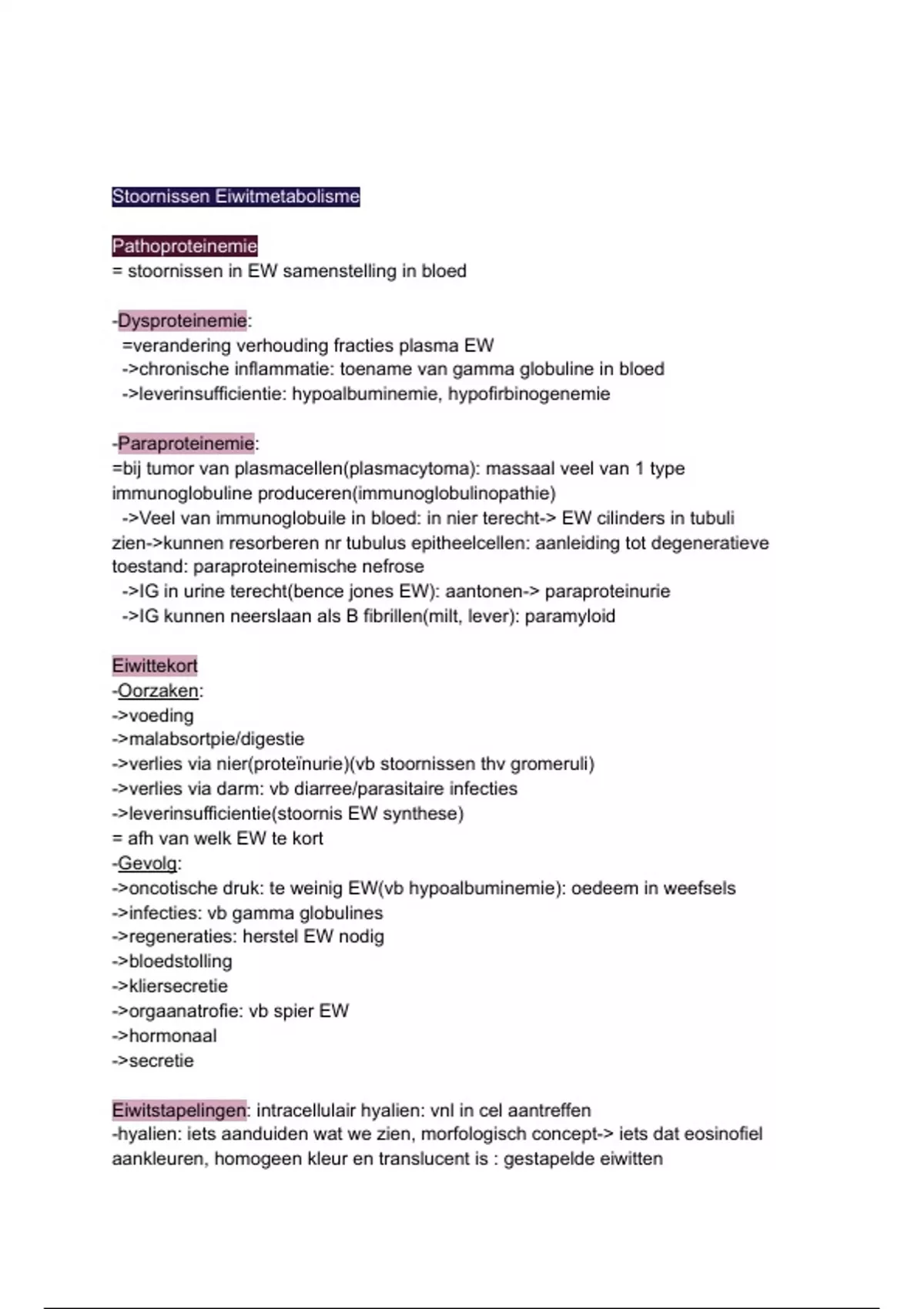 Stoornissen Eiwitmetabolisme