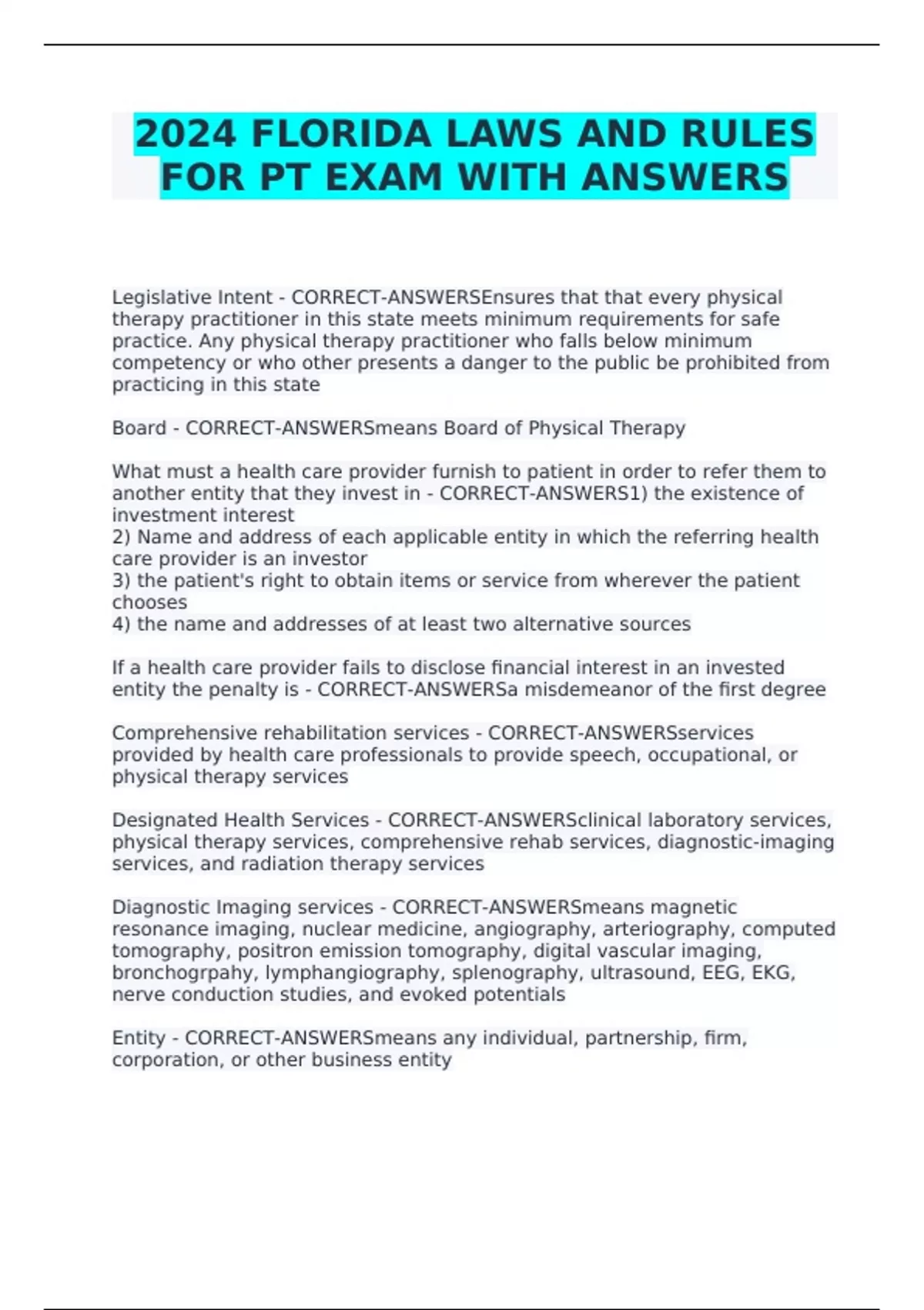 2024 FLORIDA LAWS AND RULES FOR PT EXAM WITH ANSWERS