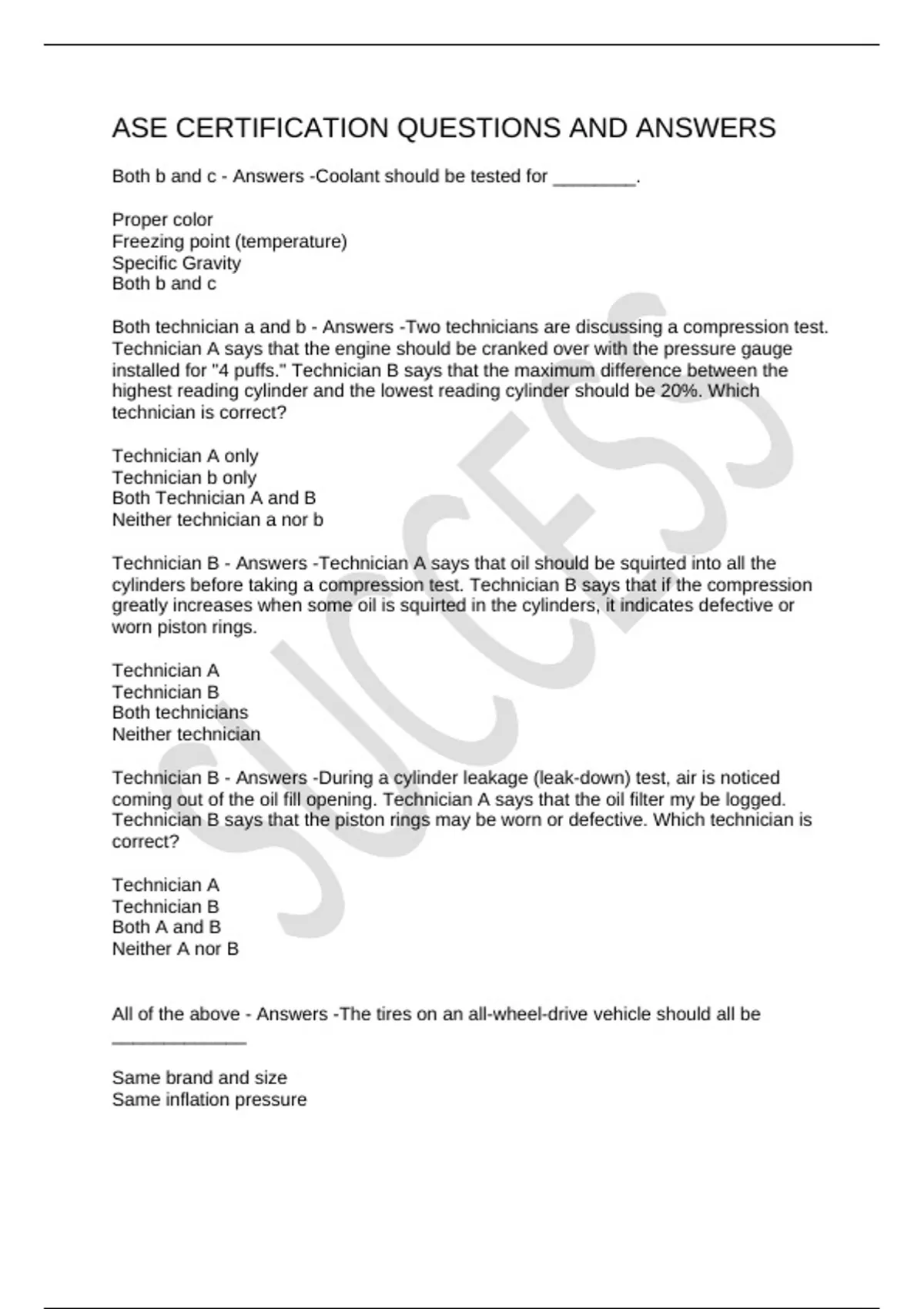 ASE CERTIFICATION QUESTIONS AND ANSWERS
