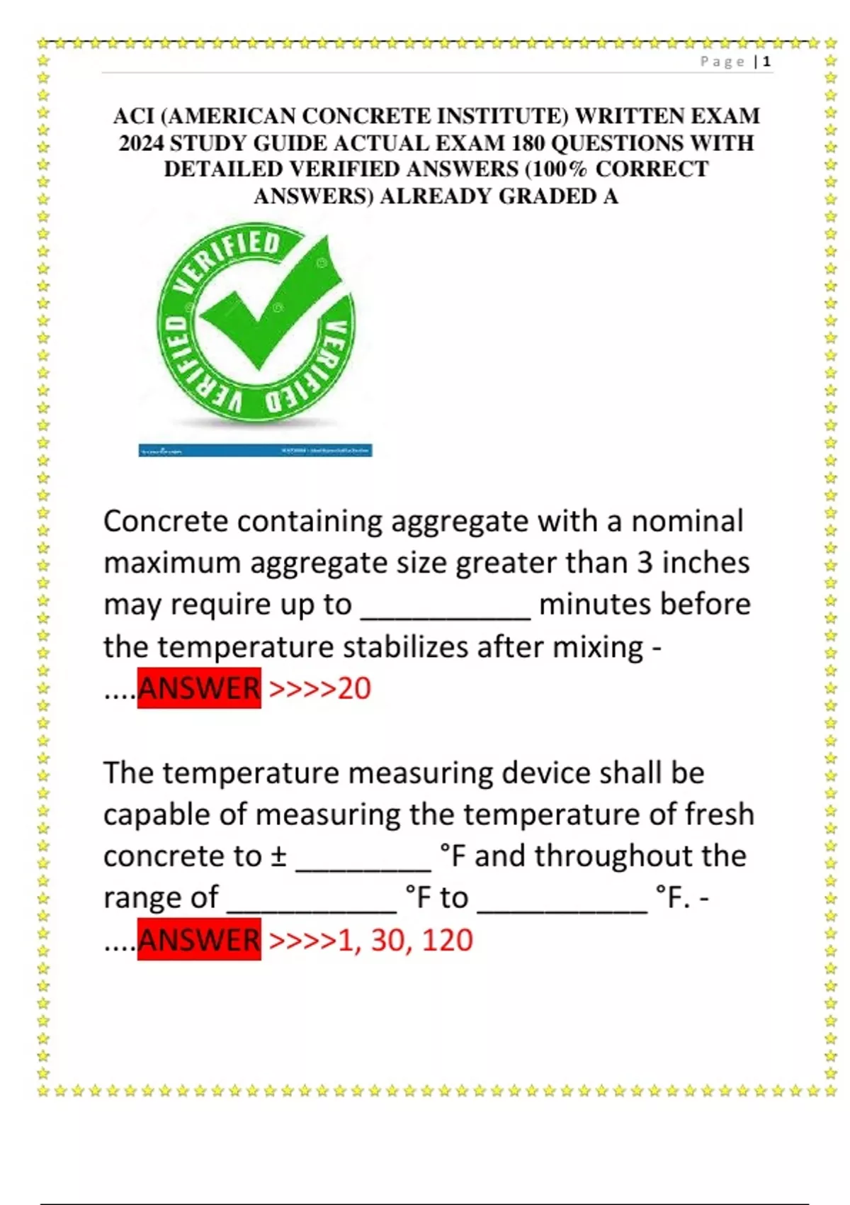 ACI (AMERICAN CONCRETE INSTITUTE) WRITTEN EXAM
