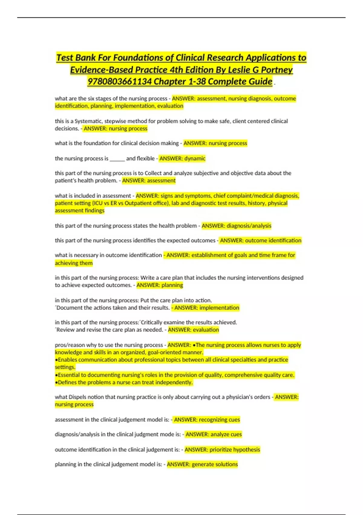 Foundations of Clinical Research Applications to Evidence-Based Practice 4th Edition By Leslie G Portney 9780803661134 Chapter 1-38 Complete Guide