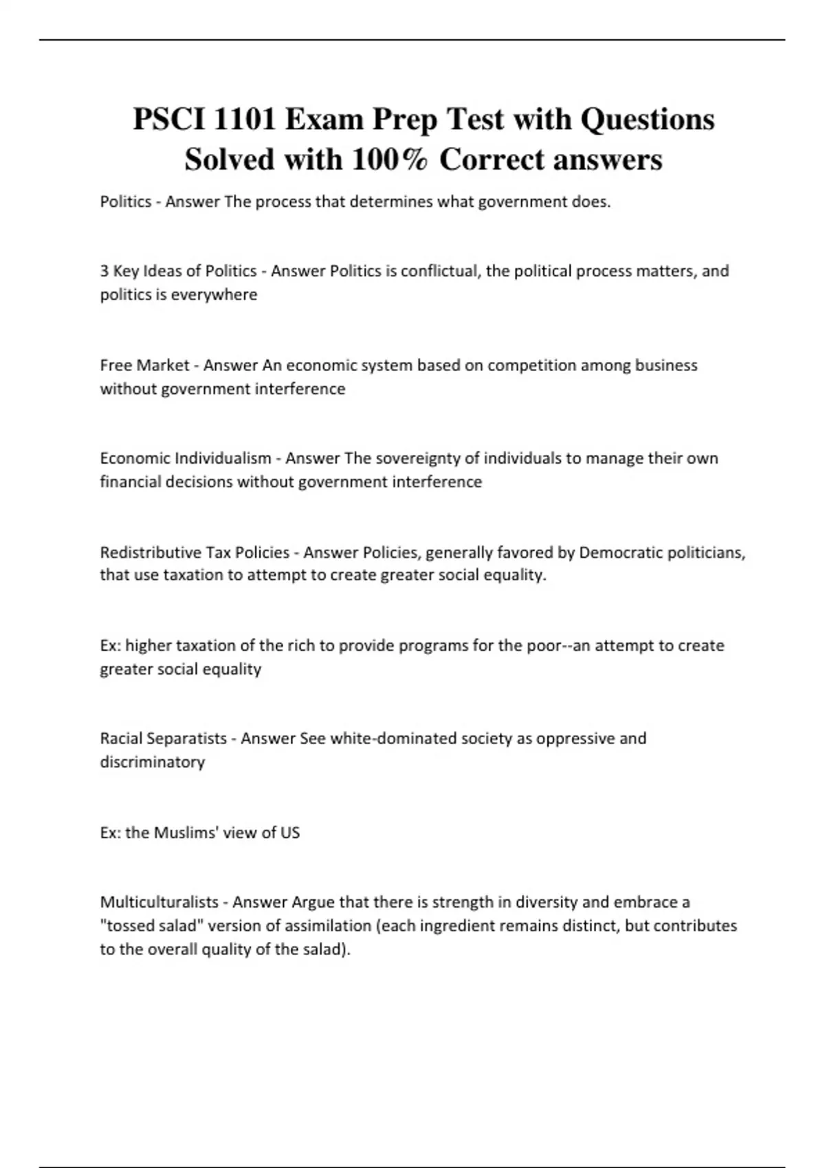 Politics - Answer The process that determines what government does.